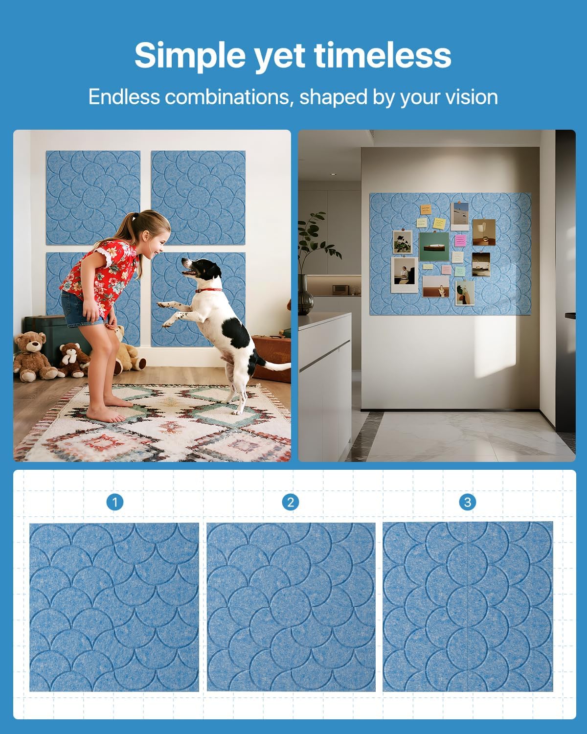 12-Pack Shell Acoustic Wall Panels Self-Adhesive, 10.6lb/ft³ High Density Sound Proof Foam Panels for Walls, 12" X 12" Soundproof Wall Panels for Door, Ceiling, Home Office, Sky Blue