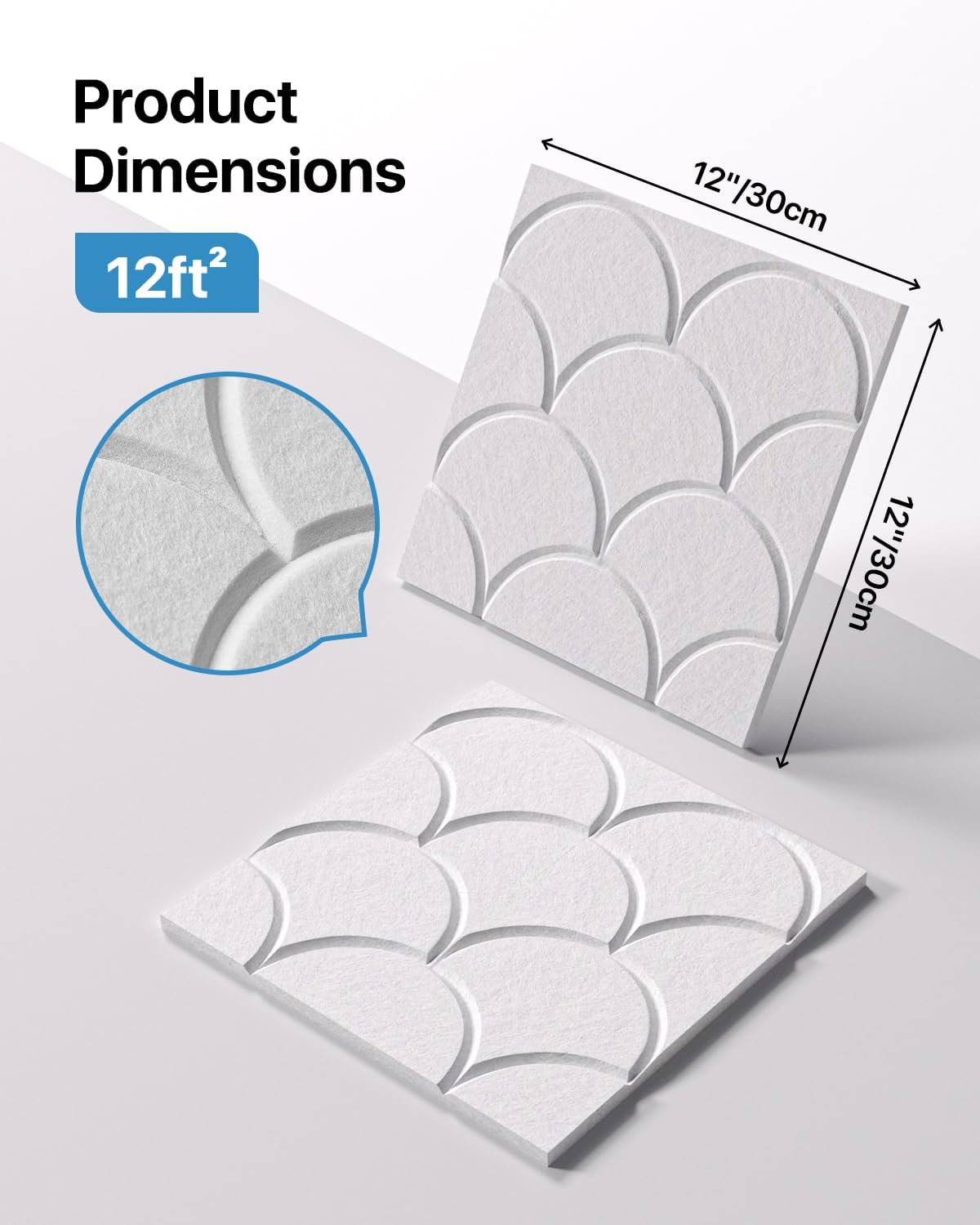 12-Pack Shell Acoustic Wall Panels Self-Adhesive, 10.6lb/ft³ High Density Sound Proof Foam Panels for Walls, 12" X 12" Soundproof Wall Panels for Door, Ceiling, Home Office, White