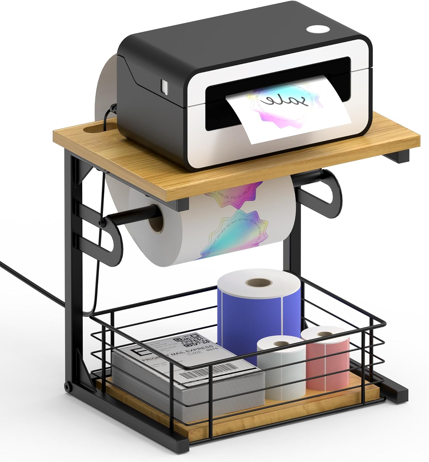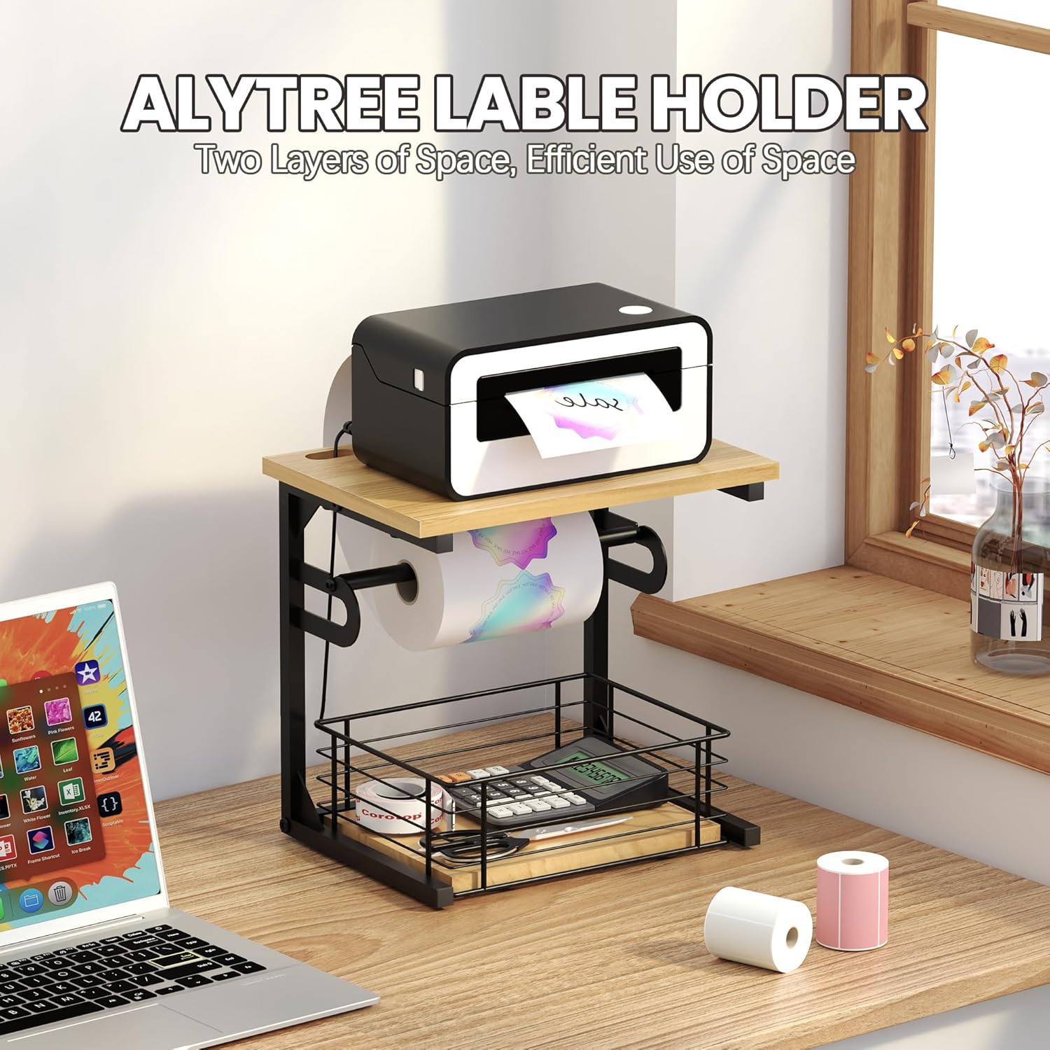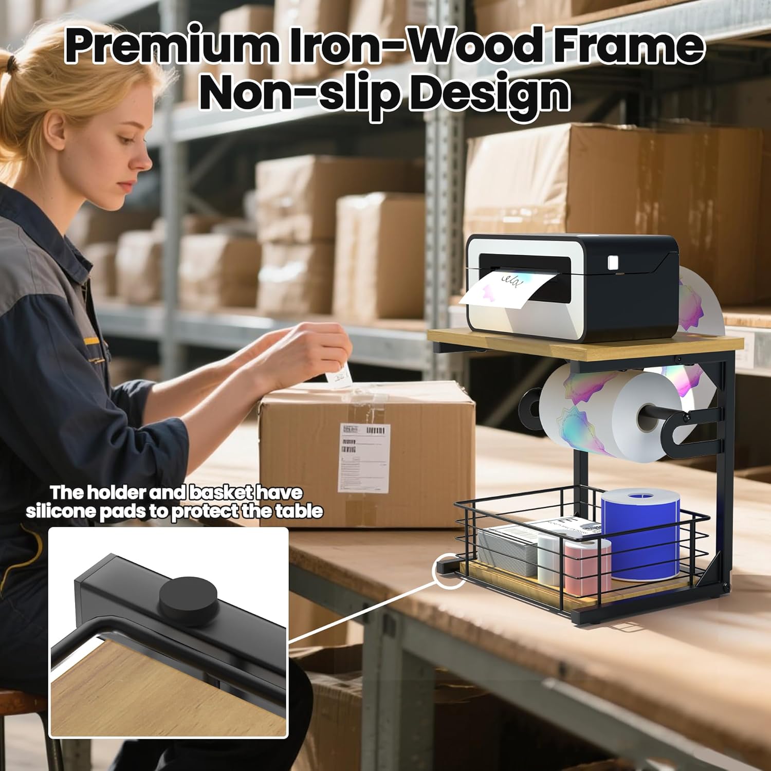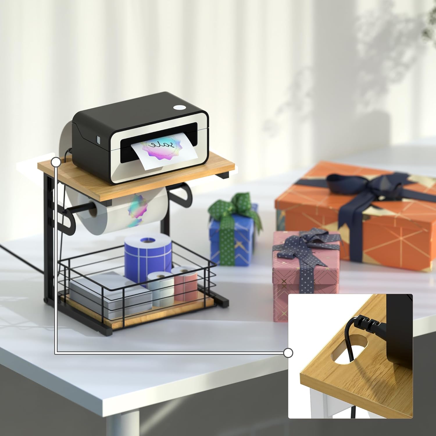 - 【Durable and Sturdy】Crafted from premium carbon steel brackets and solid wood that is 0.6 inches thick, it offers excellent load-bearing capacity. Enduring countless tests, it has proven its ability to securely accommodate large label printers indefinitely, ensuring unwavering stability every time you print.