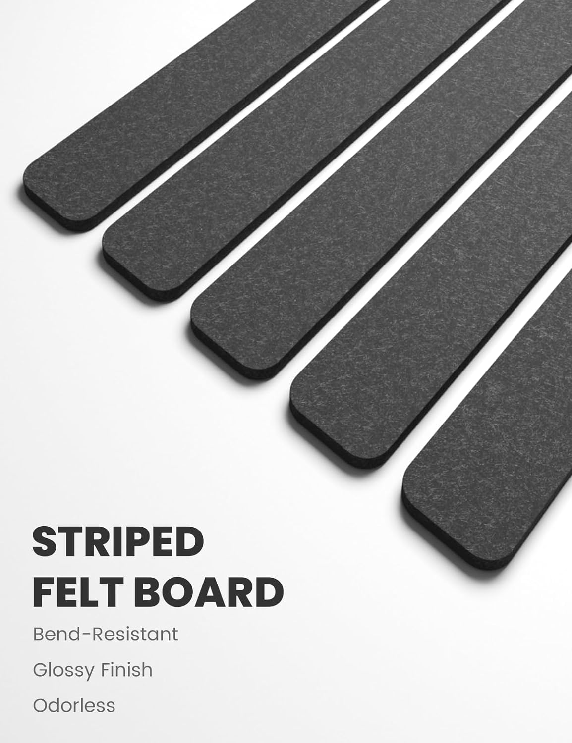 - 【Compact & Slim Design】Each felt strip features an ultra-slim 13"x2"x0.35" design with 35 push pins and 20 adhesive pads included—create unique bulletin boards at home, office, or dorm to unleash your creativity and personalize any space.