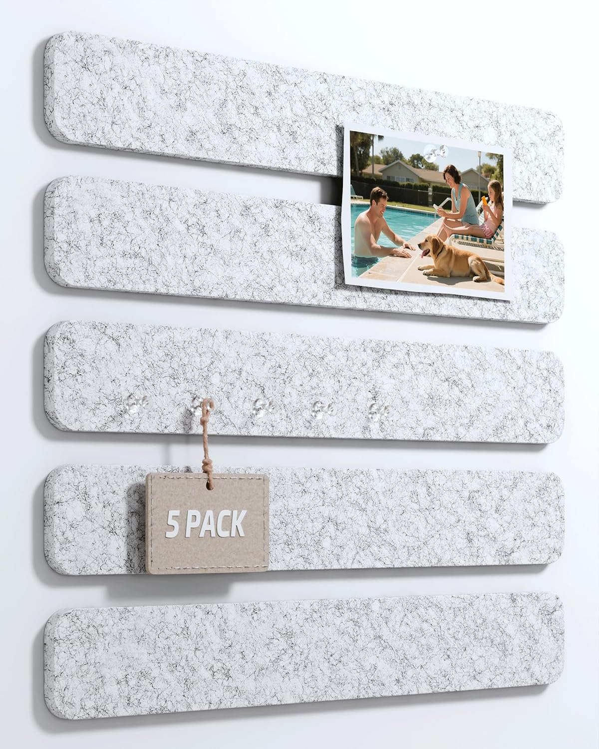Cork Board Alternative Felt Strip Board 5-Pack 13"x2", Office Pin Board with 35 Push Pins, Adhesive Install for Bedroom Door & Home Office(Marble Gray)