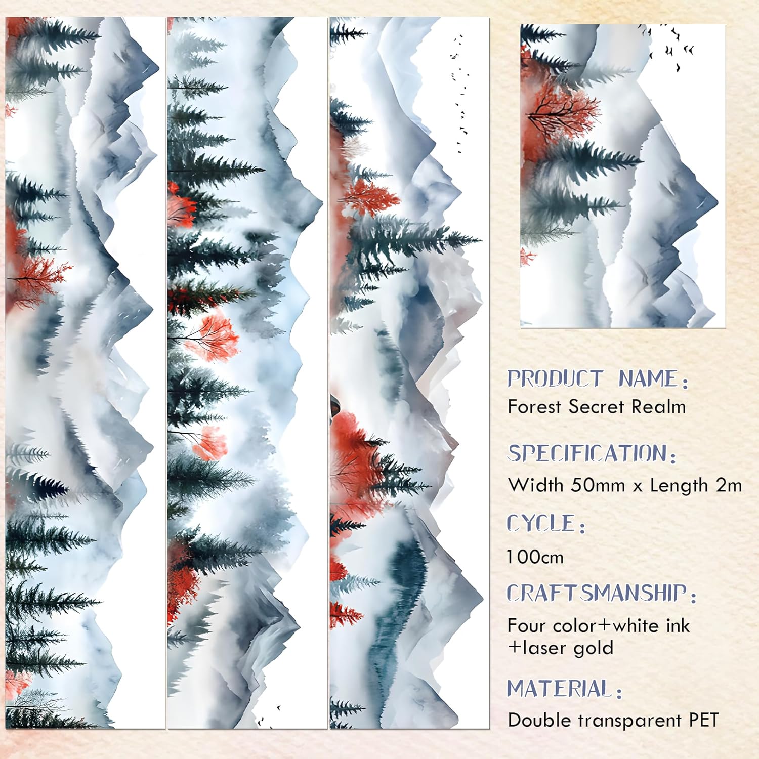 Landscape PET Tape for Journal Scrapbooking - Forest Mountain PET Tapes Washi Stickers for Crafts Journaling Scrapbook Supplies Aesthetic Notebook Scrapbook Bottle Crafts Decor