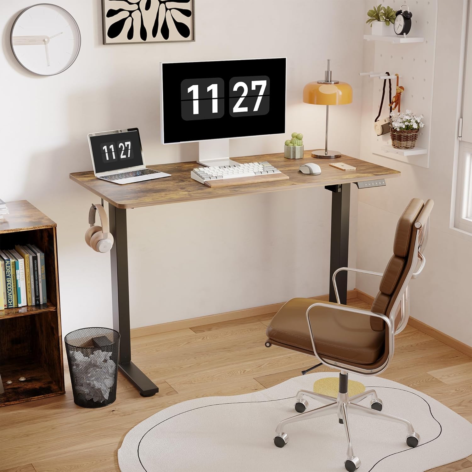 FLEXISPOT One-Piece Electric Standing Desk, 48 x 30 Inches Adjustable Desk with Seamless Desktop, Memory Controller Height Adjustment (Black Frame + Rustic Brown Desktop, 2 Packages)
