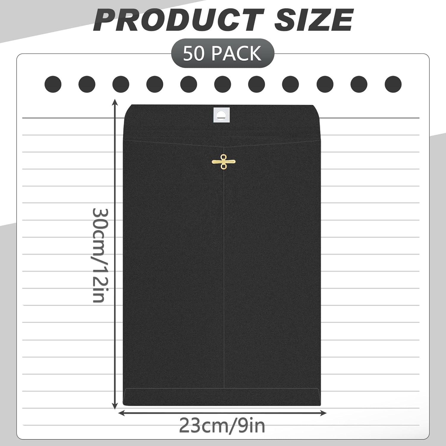 Geyee 50 Pcs 9 x 12 Inch Black Clasp Envelopes Letter Size Mailing Envelopes with Clasp Closure for Filing Storing Documents Office Home Business School