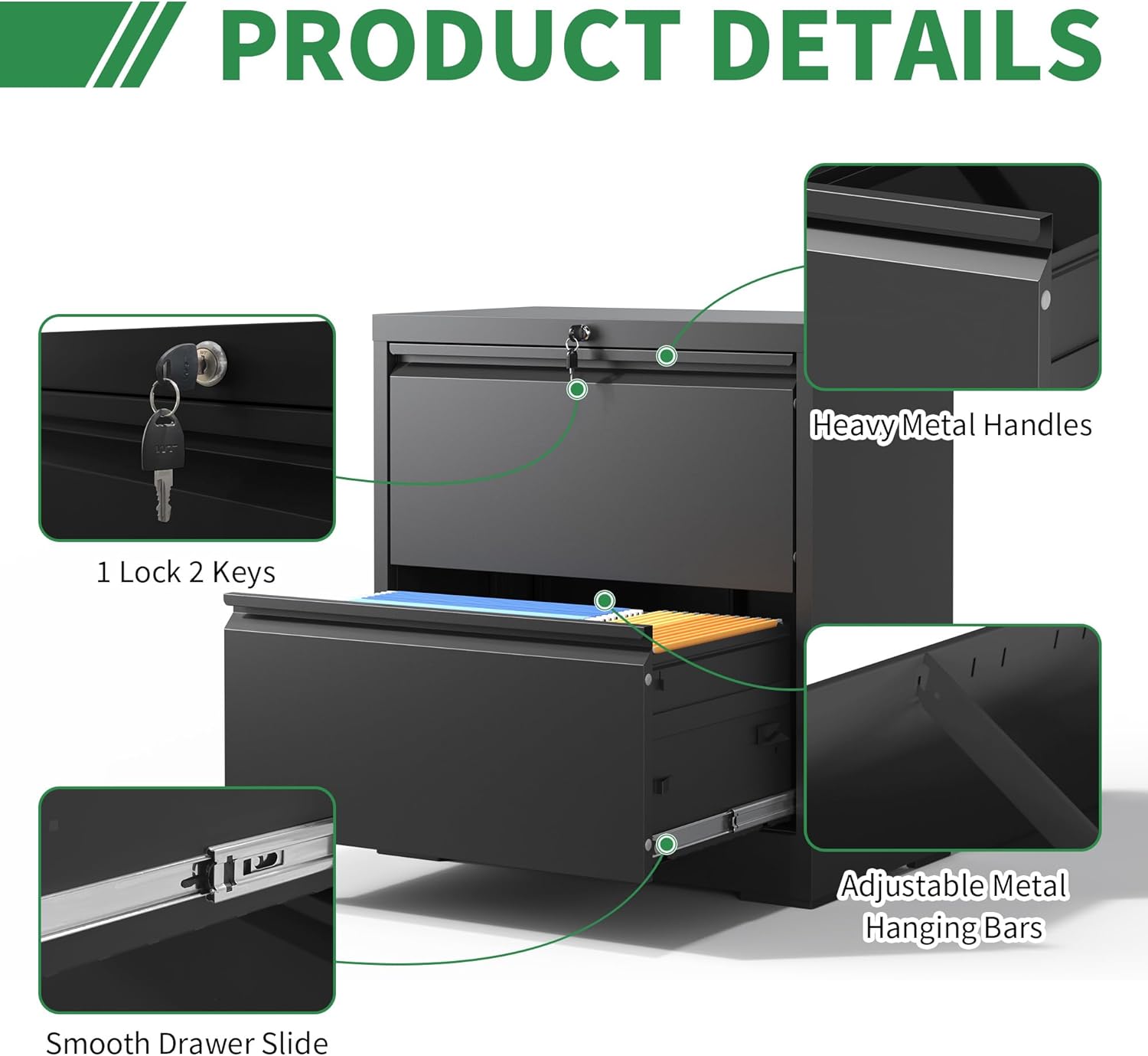 - 【Assemble and Satisfactory Service】: The 2 drawer metal lateral file cabinet requires assembly and comes paper assembly instruction sand videos to help you complete the installation faster. If you have any questions after purchasing, you can contact us directly. We will help you to solve all problems.