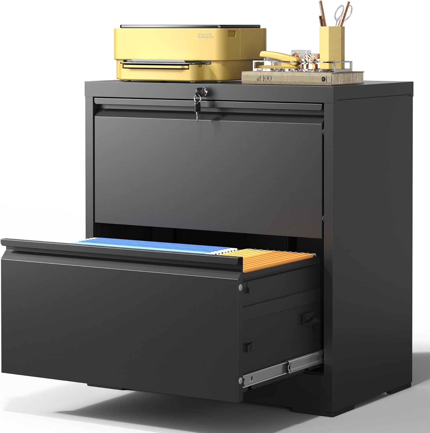 - 【Humanized Design】: The steel ball bearing full extension drawer of the lateral file cabinet slide, high-quality ball bearing glides for easy to open and close the drawers. Experience ultimate convenience with our filing cabinet's humanized design features, allowing you to work without disturbing others and maintaining a peaceful environment.