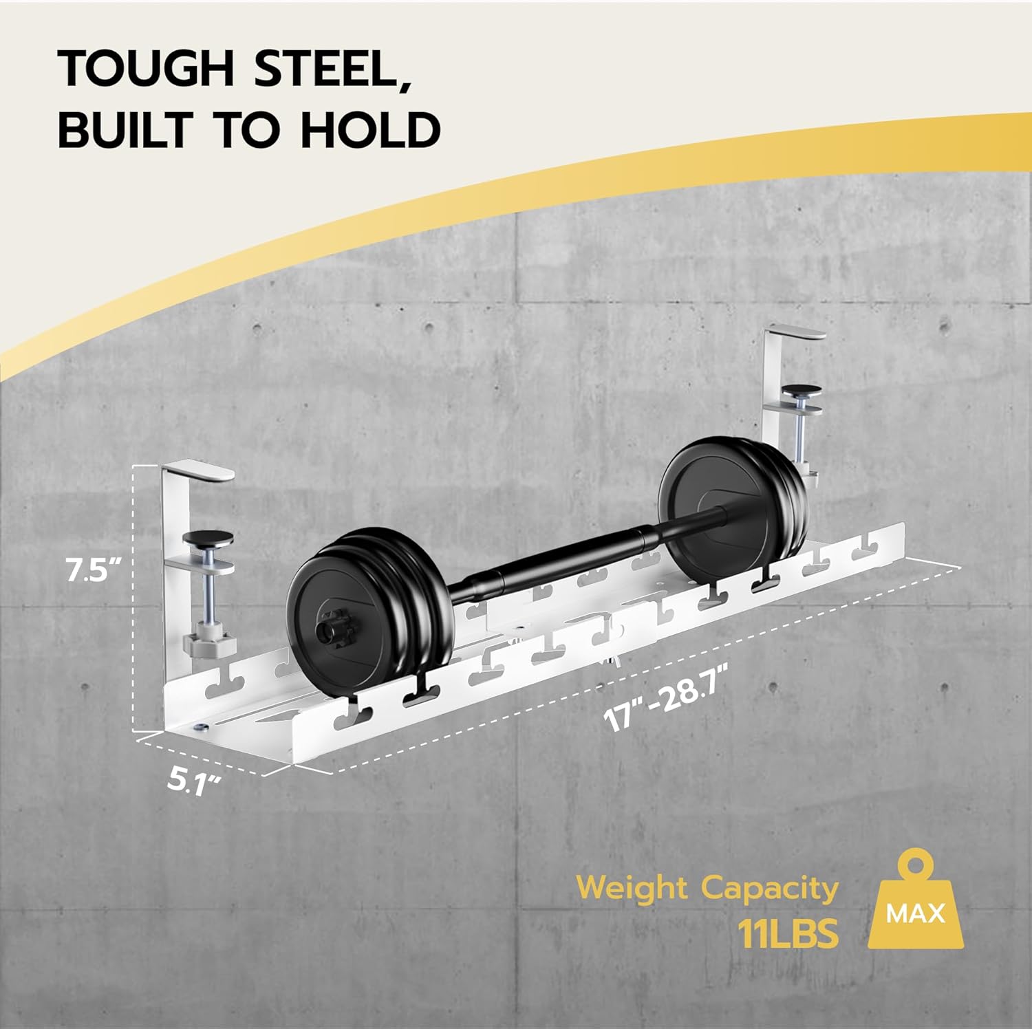 - 【Durable Metal Build for Long-Term Use】Crafted from robust, fully welded steel with a smooth powder-coated finish, this cord organizer for desk resists rust and minimizes dust buildup—even with long-term use under your desk. It supports up to 11 lbs of weight, making it a dependable solution for keeping cables, power strips, and adapters organized.