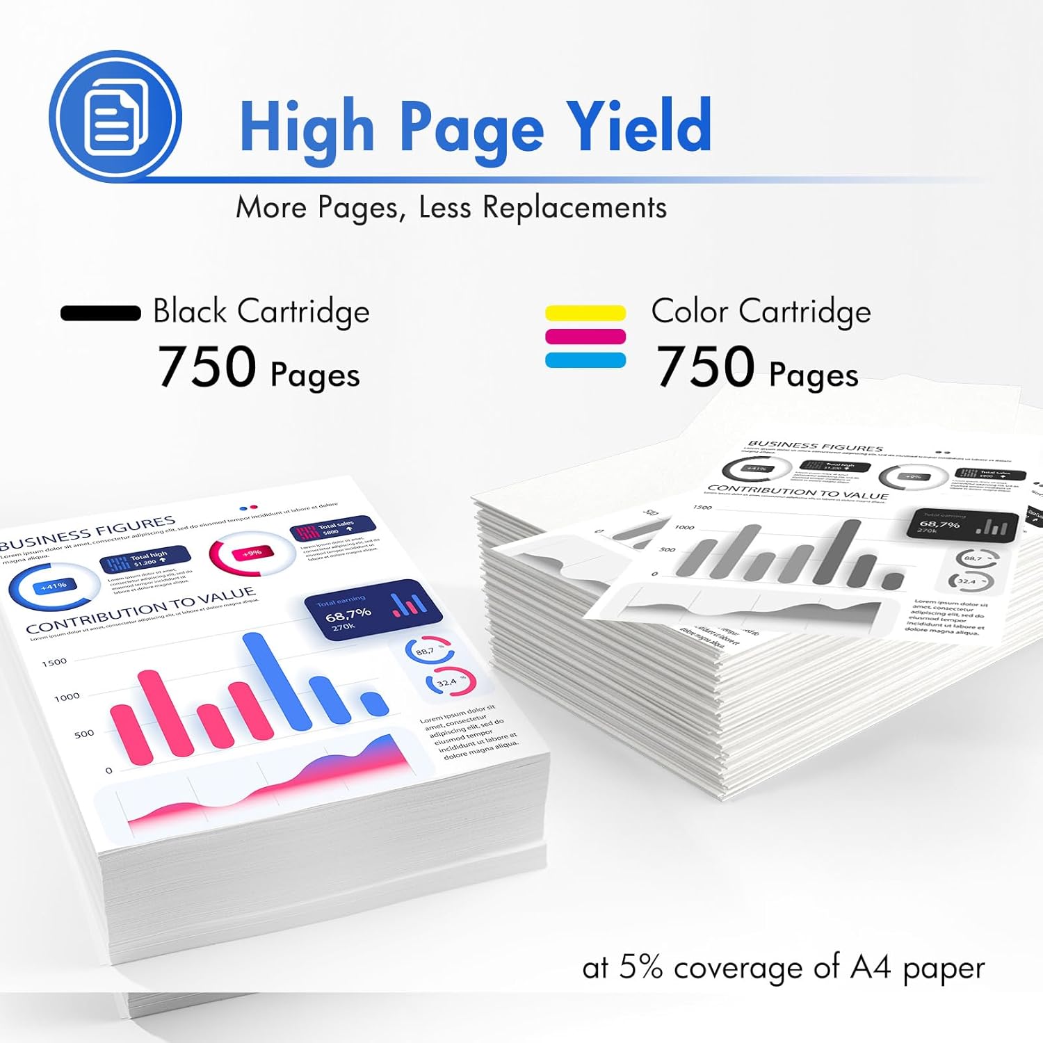 - High Page Yield: High yields up to 750 pages per ink cartridge (5% coveragae*A4 paper size)