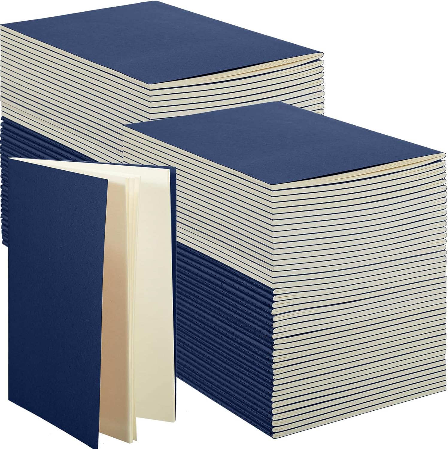 Mimorou 100 Pcs Kraft Notebook Journals 5.5 Inch x 8.3 Inch A5 Softcover Notebooks Bulk for Writing Sketch Office Notepad with 60 Pages 30 Sheets (Navy,Unlined)