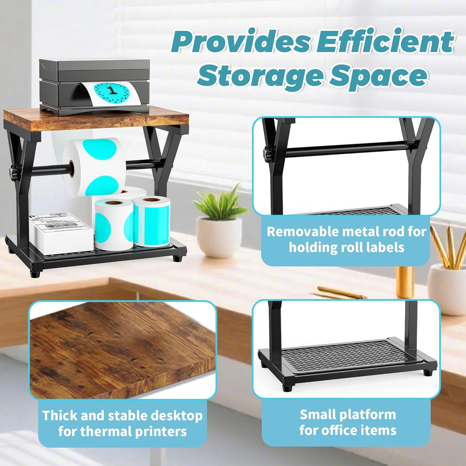 - 【Stable Support, Easy to Install】Constructed from sturdy metal and solid wood, the Label holder for thermal printer offers excellent load capacity and long-lasting performance. Anti-slip pads on the bottom prevent unwanted movement or tilting during use, ensuring steady, smooth printing. Its simple construction makes assembly quick and hassle-free.
