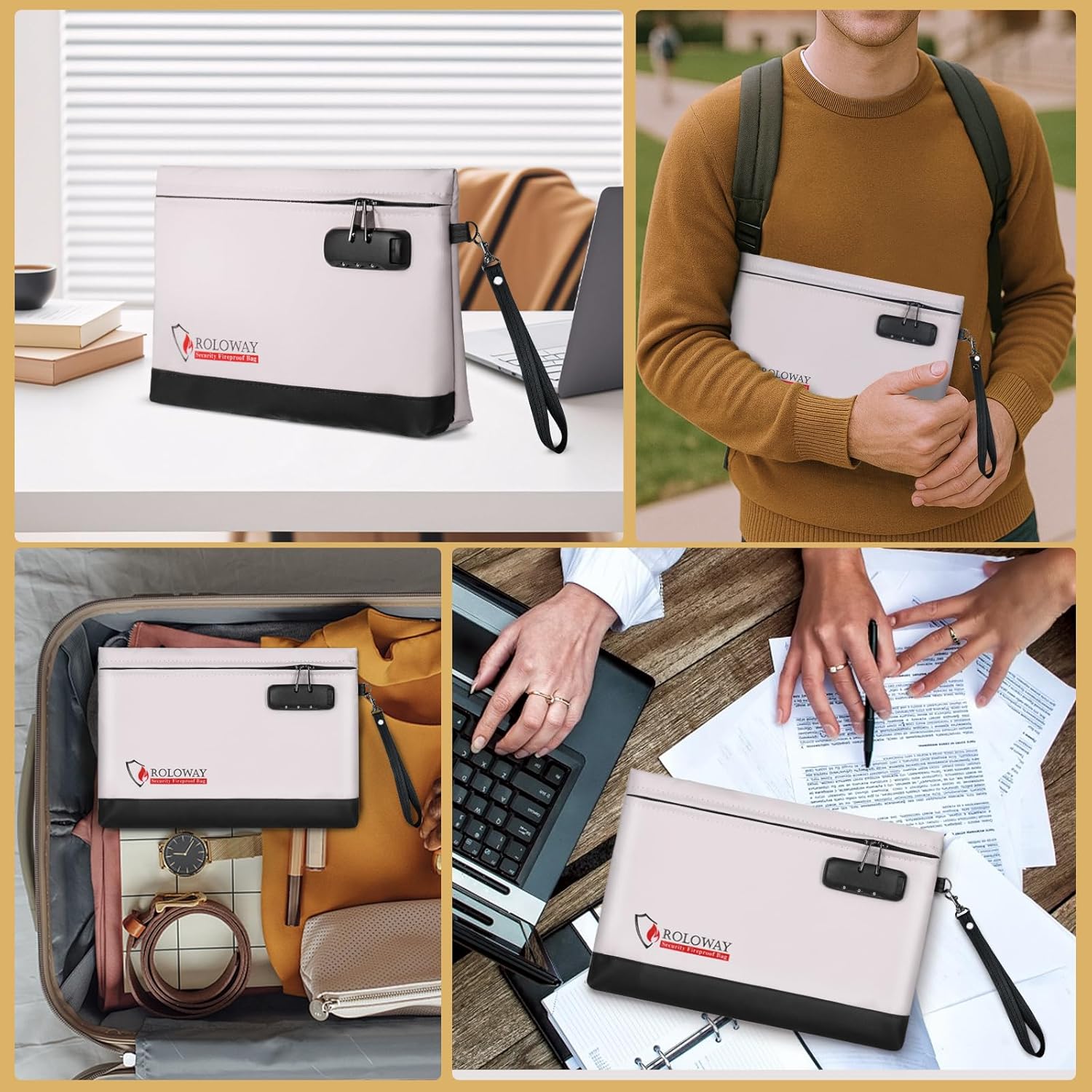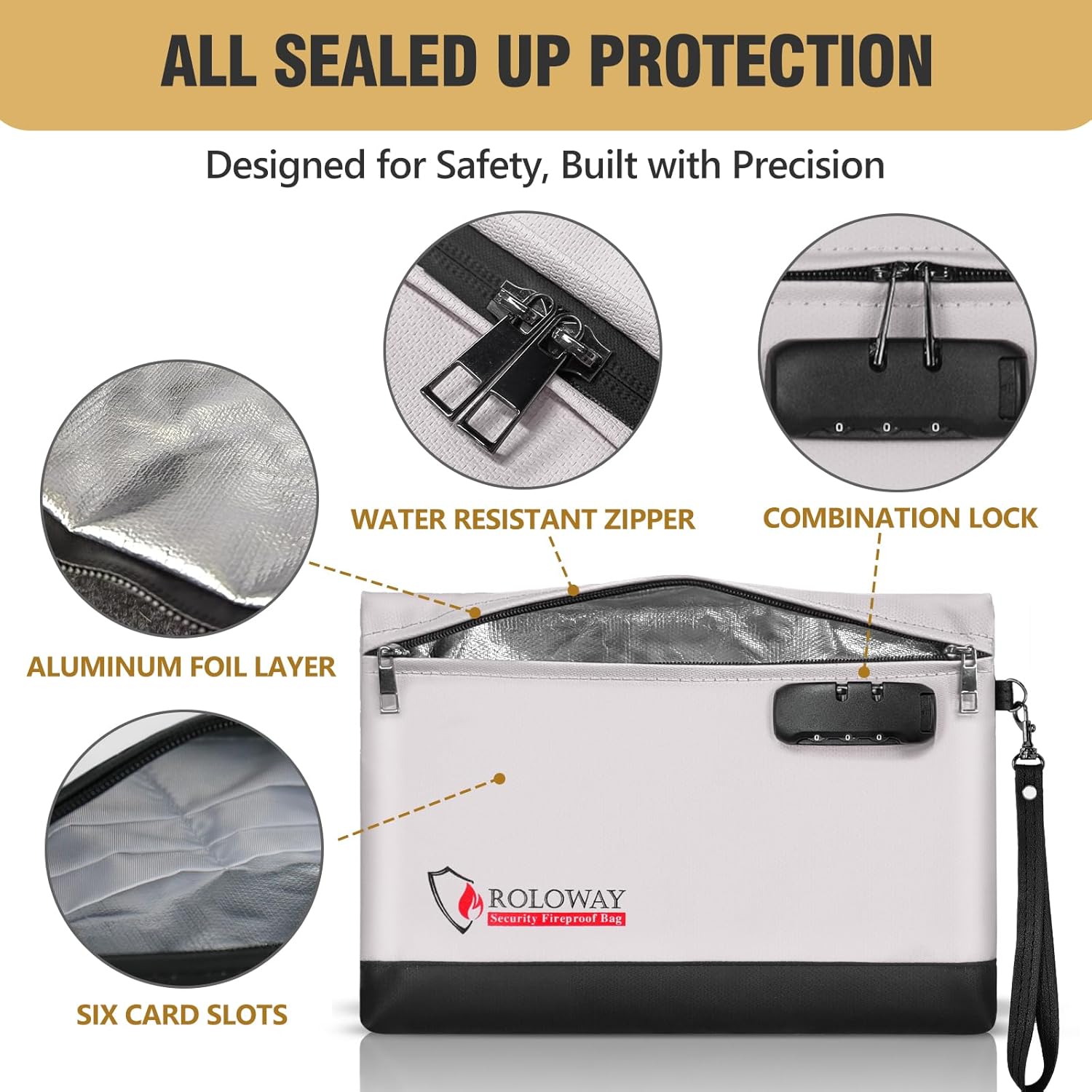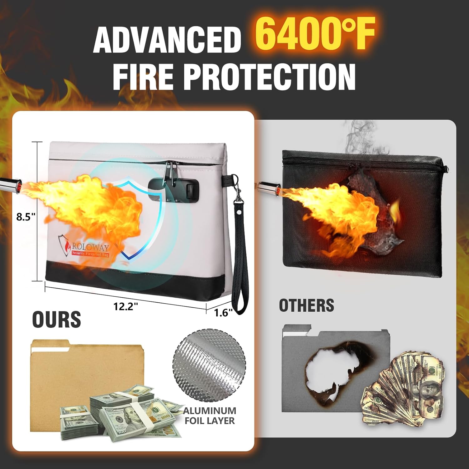 - [ALL SEALED UP 6400°F FIRE & WATER RESISTANT BAG]: Protect your valuables with confidence. This fireproof money bag features a 12-LAYER STRUCTURE that can withstand temperatures up to 6400°F (UL94 VTM-0) in certain times. It's your go-to fireproof document bag for cash, IDs, passports, valuables and more—offering peace of mind during emergencies.