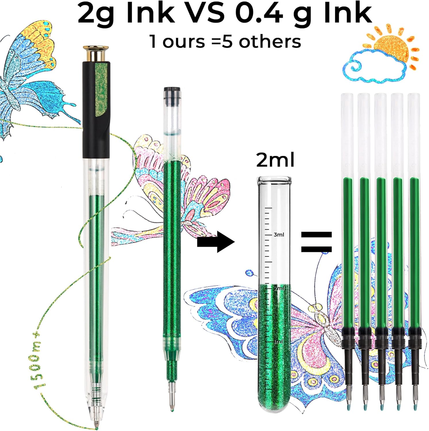 - 12 Sparkle Glitter Gel Pens:Unlock endless creativity with our 12-color glitter gel pen set, featuring a curated selection of shades from our most popular sparkle color families. Each retractable pen features a smooth 1.0mm precision tip and rich, high-density glitter ink that flows effortlessly for flawless detailing. Whether you're a professional artist or crafting enthusiast, these premium sparkle pens will bring your creations to life with dazzling sparkle!