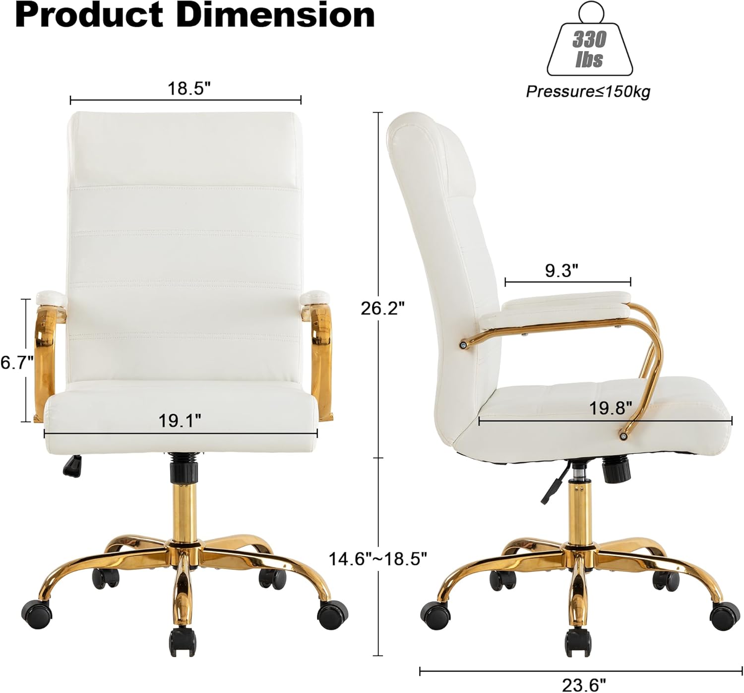 - 【Quality Assurer】 Solid Steel frame,Sturdy five-point base with rolling caster wheels for smooth mobility. The modern office chair uses an SGS certified Class 3 gas lift that can hold up to 330 lbs.