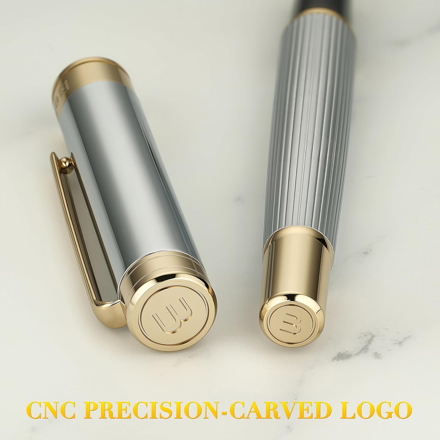 BEILUNER Lighthouse series Rollerball pen, Silver Chrome pen body, exquisite vertical lines, Schneider 850 refill, suitable for men, office, professionals, exquisite and chic designer pen