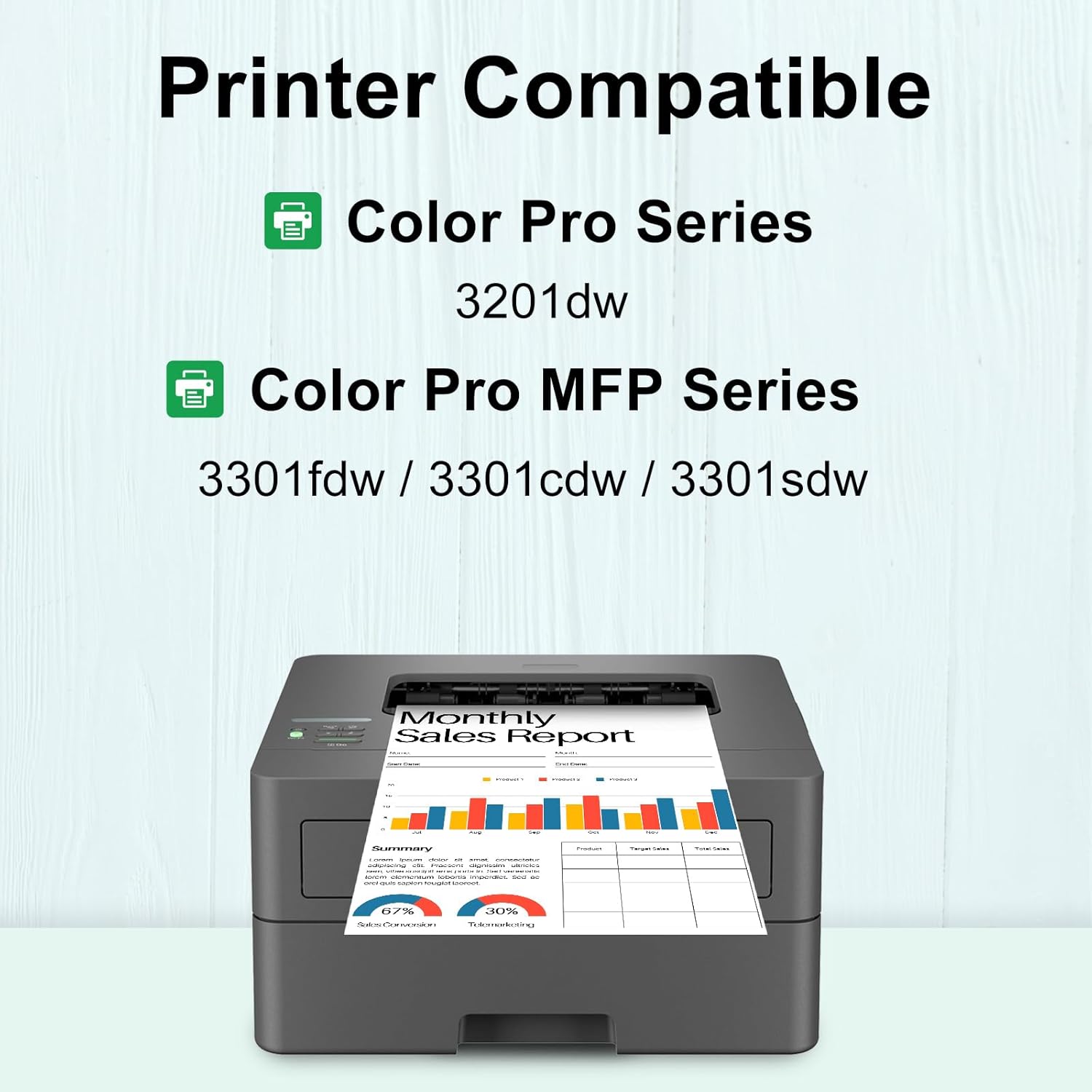 - Compatibility Options : Compatible with HP Color LaserJet Pro MFP 3301cdw, Color Pro 3301fdw, Color Pro 3301sdw, Color Laser Jet Pro 3201dw Printers Compatible with HP Color LaserJet Pro MFP 3301cdw, Color Pro 3301fdw, Color Pro 3301sdw, Color Laser Jet Pro 3201dw Printers