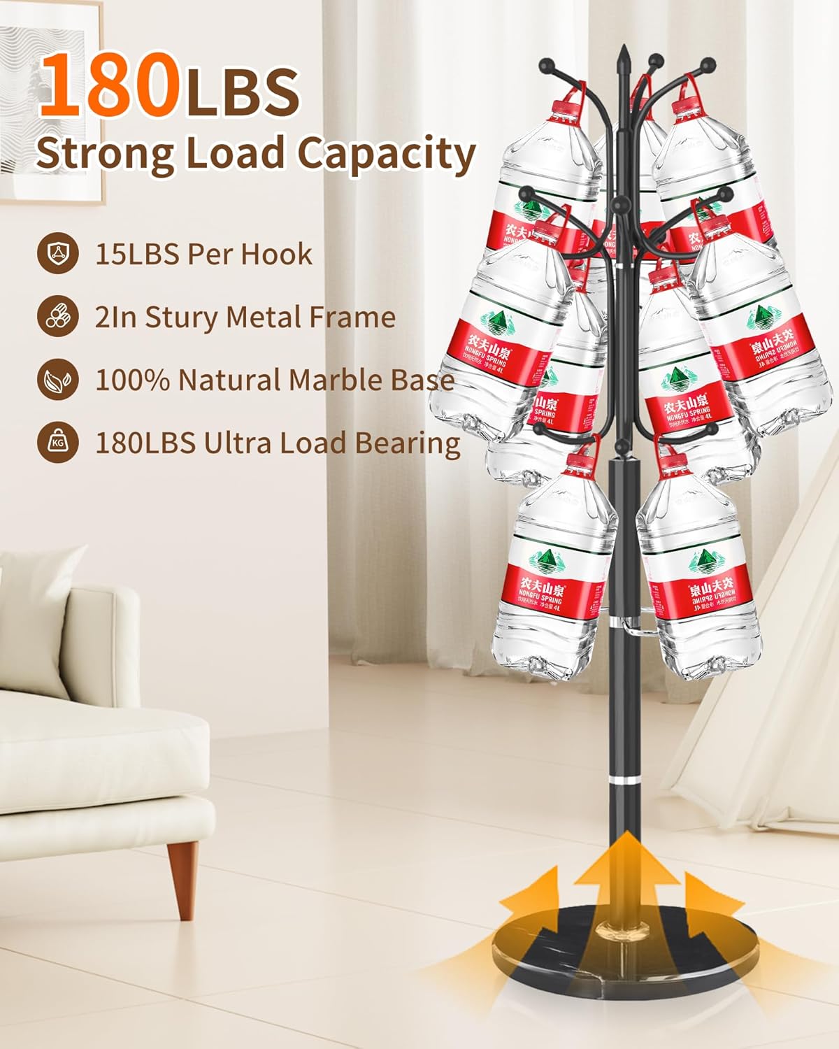 - MARBLE BASE COAT RACK: EZIVIEZ standing coat rack base is crafted from 100% natural marble. Each base is hand-selected from natural mining and has a unique natural texture. This heavy marble base is thickened and widened, and can easily bear 180 pounds. This coat rack stand can easily hang heavy winter clothes, jackets, and large handbags, and it is stable without shaking or tipping over