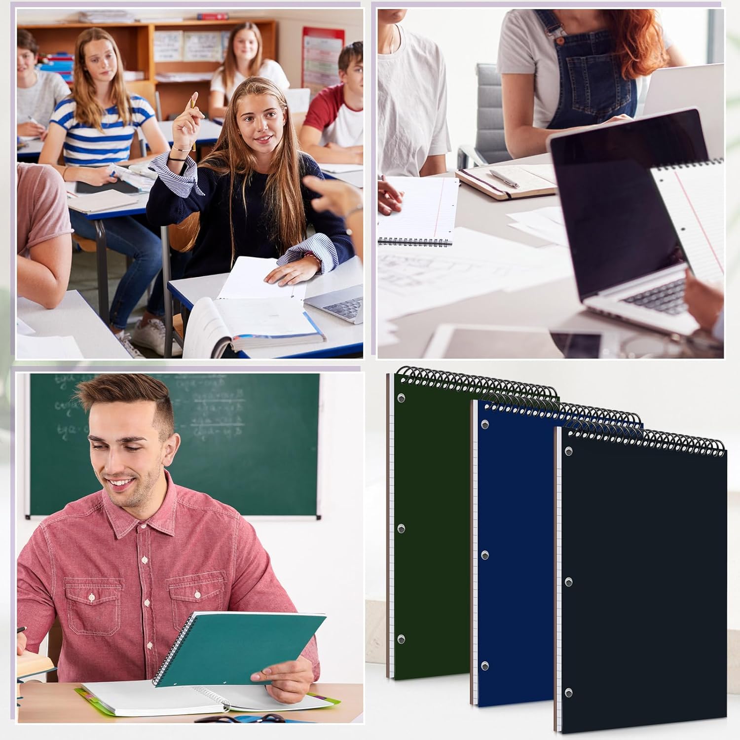 3 Packs 8.5" x 11" Top Spiral Notebook with 3 Hole Punched Legal Pads College Ruled Notepad 50 Sheets Hard Cardboard Paper Wirebound Notepad for Office School Business (Dark Colors)
