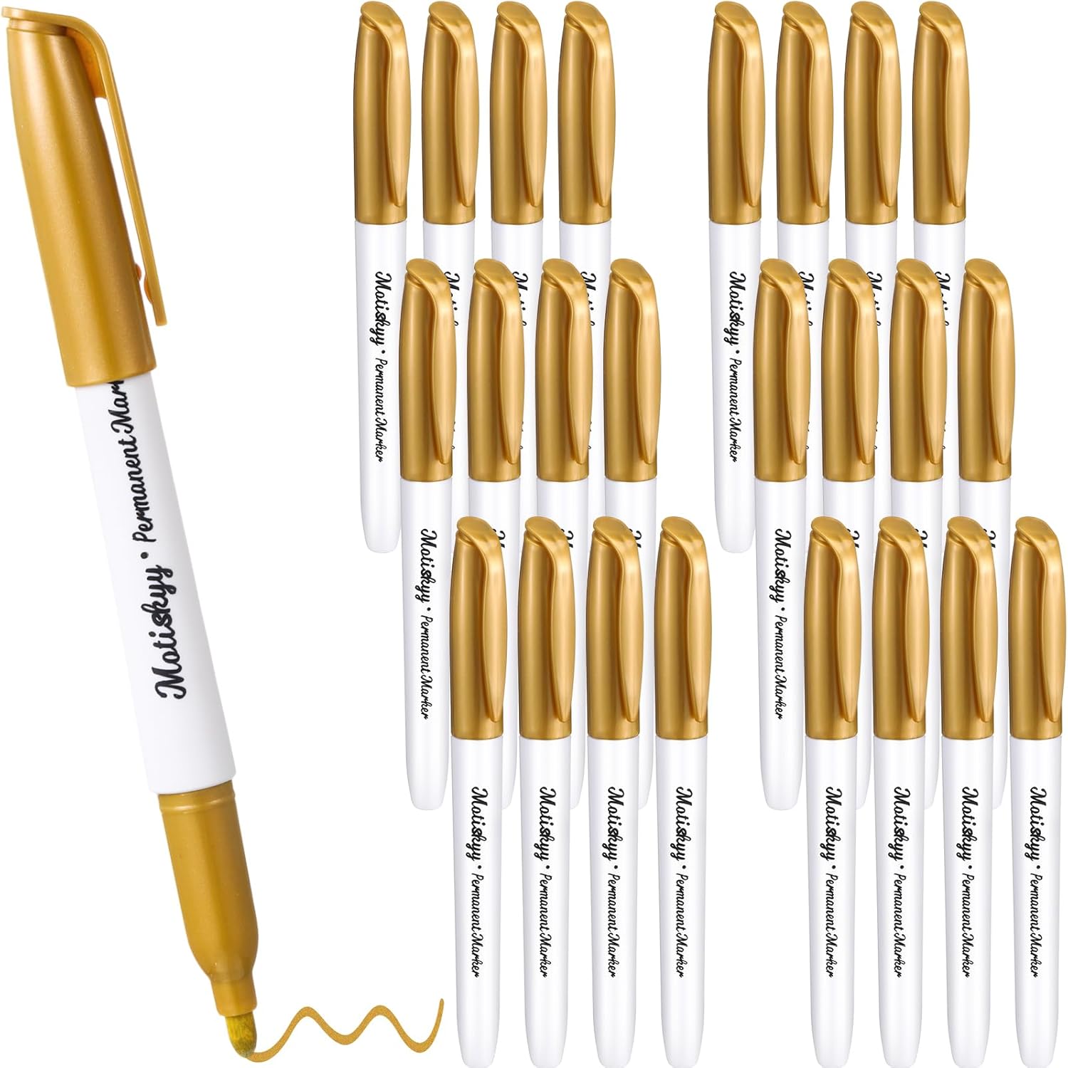 24 Pcs Metallic Permanent Markers Bulk Gold Fine Point Metallic Paint Markers for DIY Crafts, Gift Card Making, Artist Illustration (Gold)