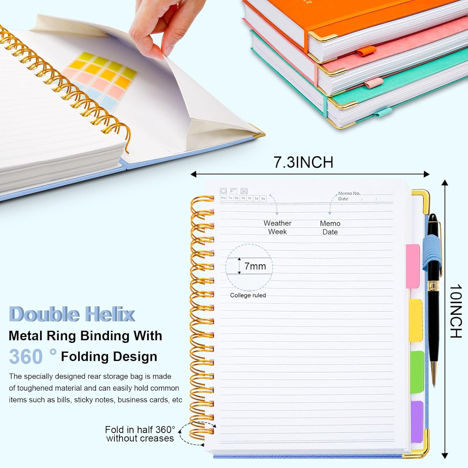 - 300 pages thick notebook:This college ruled spiral notebook features 300 pages of thick paper that resists ink bleed and ghosting. The spacious B5 layout (8"x10") makes it perfect for long-term planning, study notes, and personal journaling—less bulk, more value.