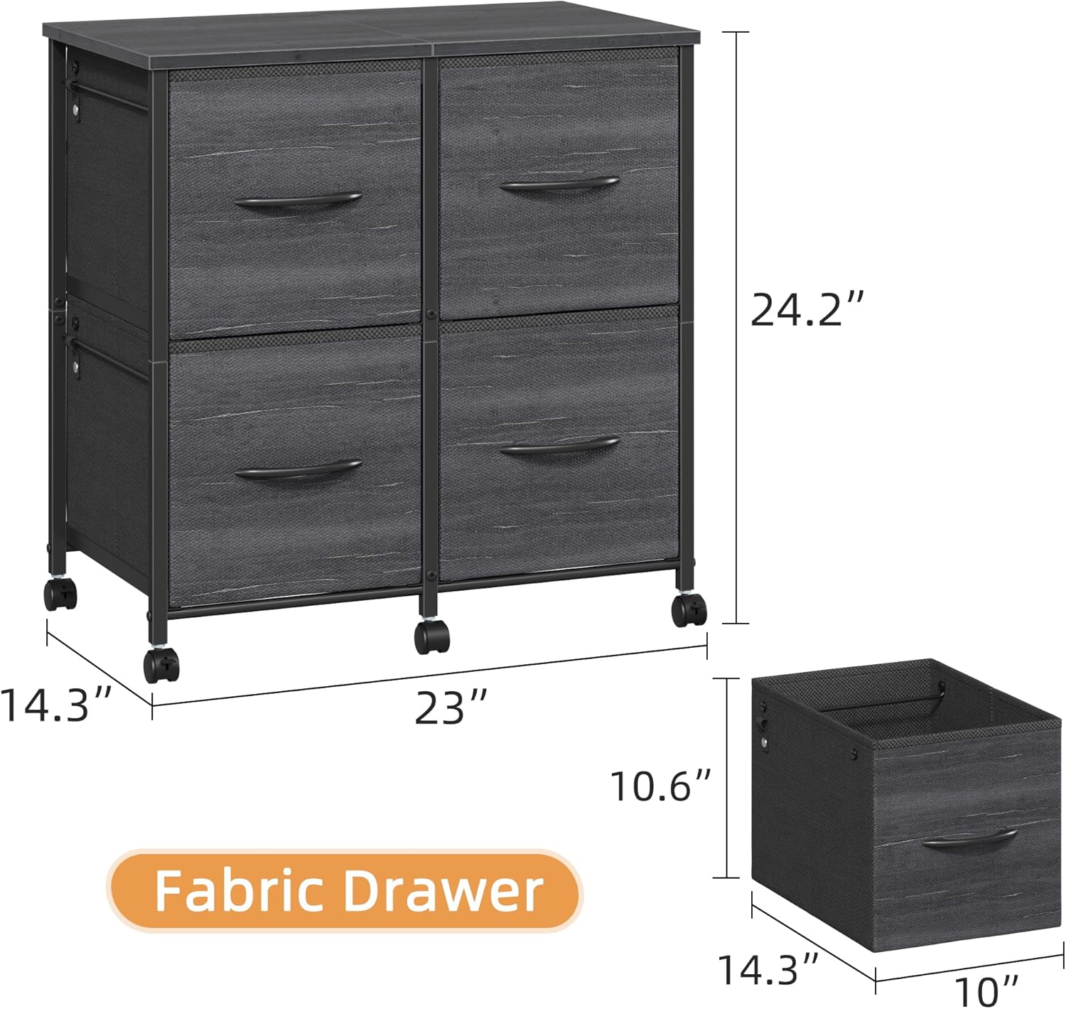 - 【Sturdy & Durable Construction】Built to last, the file cabinet for home office combines a sturdy steel frame with a 1.2X thicker engineered wood board and firm fabric-clad drawers—far sturdier than flimsy alternatives. It ensures long-lasting stability, making it a reliable storage solution for your home or office