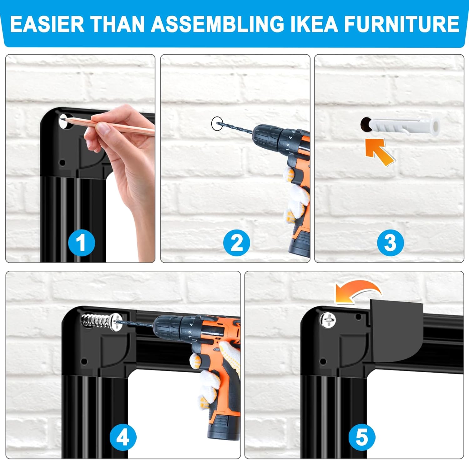 - ✔ Premium Durability – Unlike flimsy cardboard-core whiteboards, our sturdy wooden core resists warping, dents, and creases for long-lasting use. Black aluminum frame with ABS corner guards prevents dings.