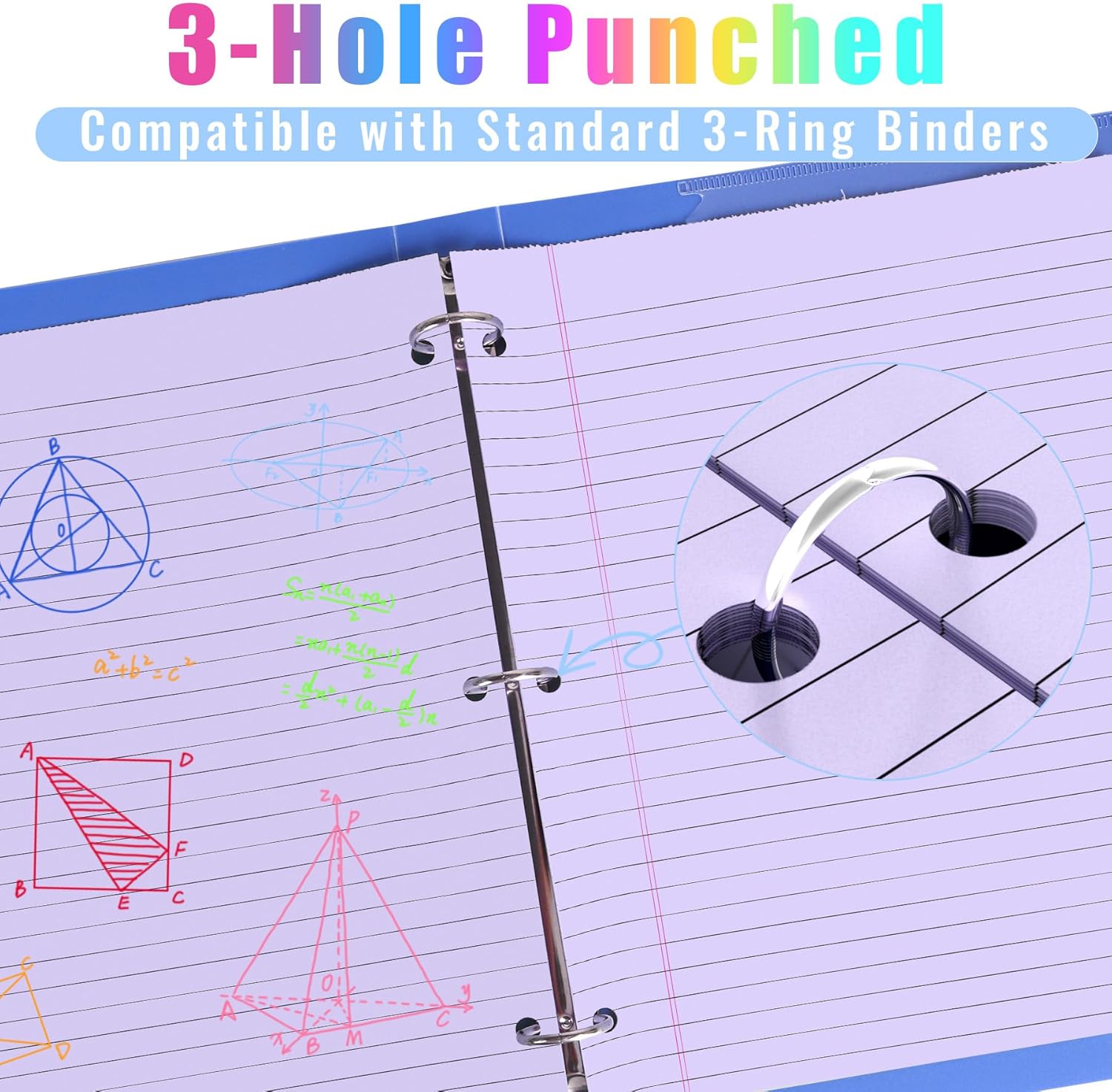 - 3-Hole Design: Wide ruled loose leaf paper can be placed in a 3-ring binder or pointed file folder as needed to keep school and project notes organized