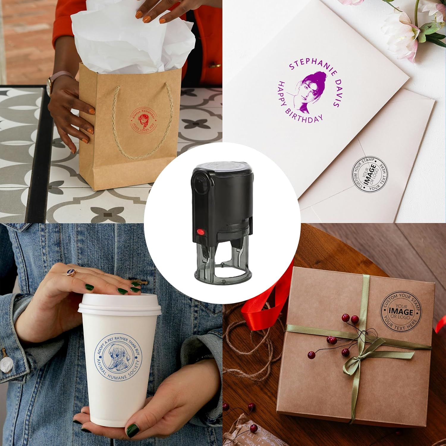 Custom Stamp Personalized Image Logo Stamp Customized Text Round Stamps Business Self-Inking Stamper Customized School Organization Institution Logo Bulk Seal Multiple Frames Options