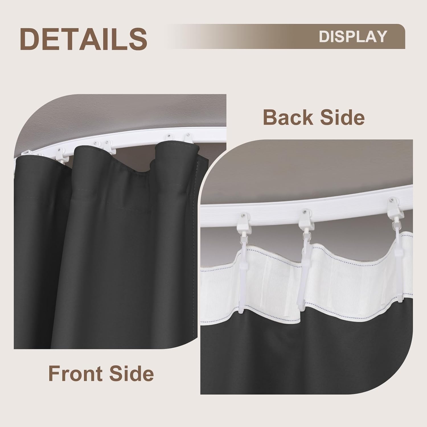 - Room Divider Curtain & Ceiling Track Set: The set includes 1 panel of black 100" wide ×96" high Room Divider Curtain and a set of white flexible bendable ceiling curtain tracks (including all accessories for installation) create new spaces without building wall,Eliminate the hassle of matching curtains and tracks.