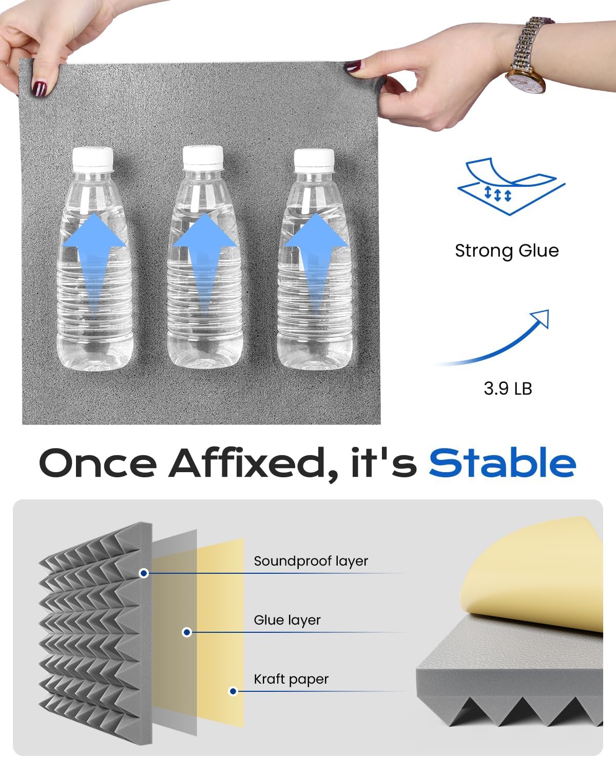 - 🚩【Convenient Self-Adhesive】For Sonicism acoustic panels, you don't need to buy additional spray glue and double-sided tape. Our soundproof wall panels comes with a self-adhesive layer, tear off the kraft paper on the back and stick it at will. The strong and long-lasting adhesive keeps the soundproof panels firmly fixed on the wall. Easy to install, don't worry about falling off.