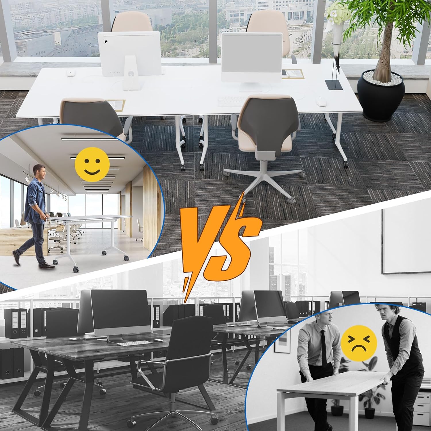 - ✅【360° MOVEMENT】The conference room table is equipped with 4 silent universal wheels. The casters can quickly move 360° to any corner, making it flexible and convenient, saving effort and worry. Conference tables can be arbitrarily combined according to different conference grouping needs.
