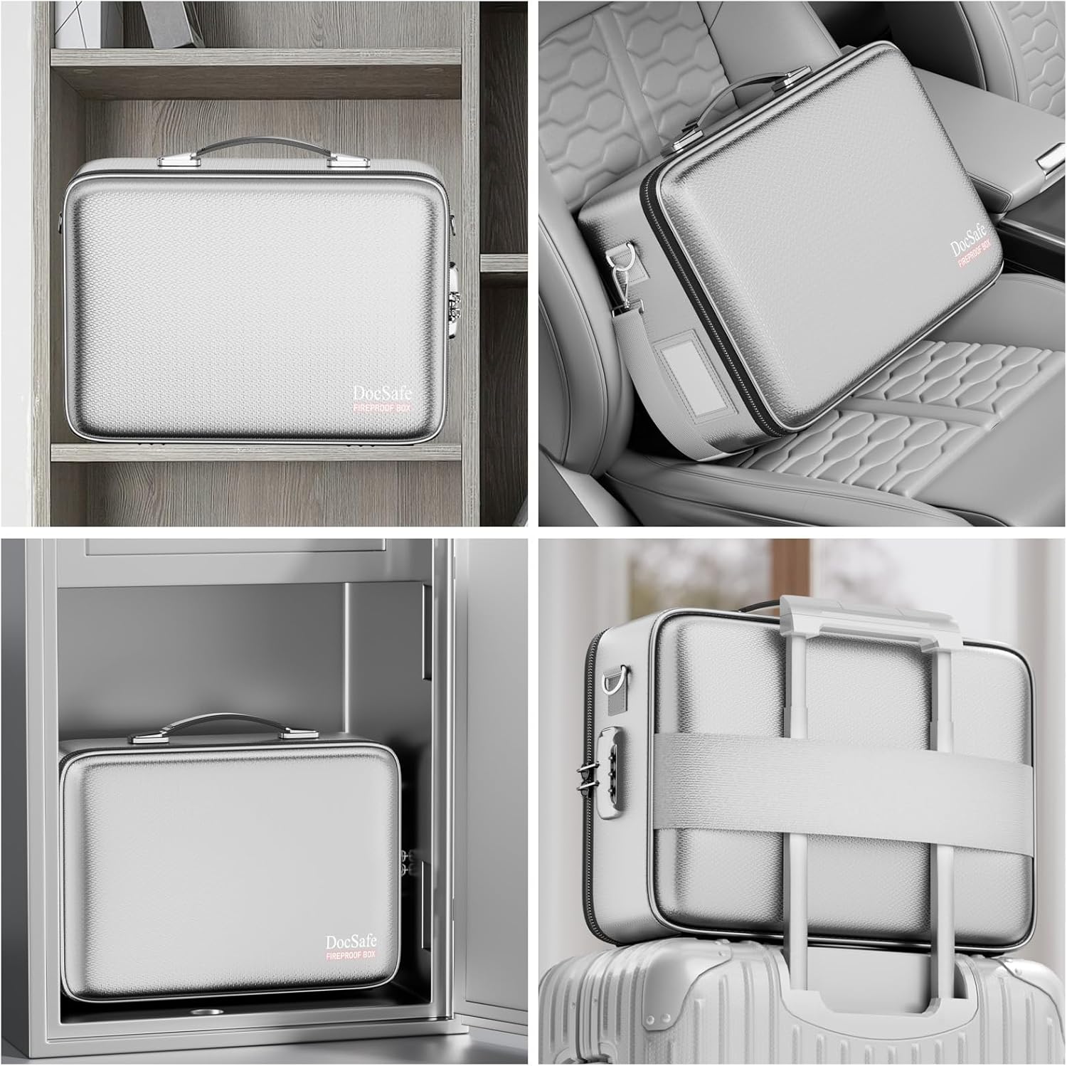 - Fireproof Box with Lock: Protect your valuables with the built-in high-quality combination lock (No keys required). Design with a strong handle&a detachable shoulder strap for carrying everything you needed easily. The fireproof box is suitable for business, travel, office, school, home storage, of course, giving it as a gift to your family is also a good choice. Fireproof box is both fireproof and water-resistant, ensuring your documents stay protected during fires, floods, or wet weather