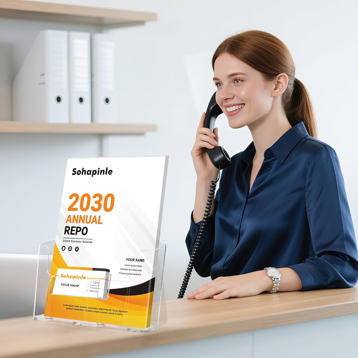 - Premium Acrylic Construction: Crafted from high-quality, crystal-clear acrylic, this brochure holder boast exceptional durability and a professional, polished look. Shatter-resistant and significantly stronger than glass, they maintain their pristine clarity for long-lasting, elegant display.