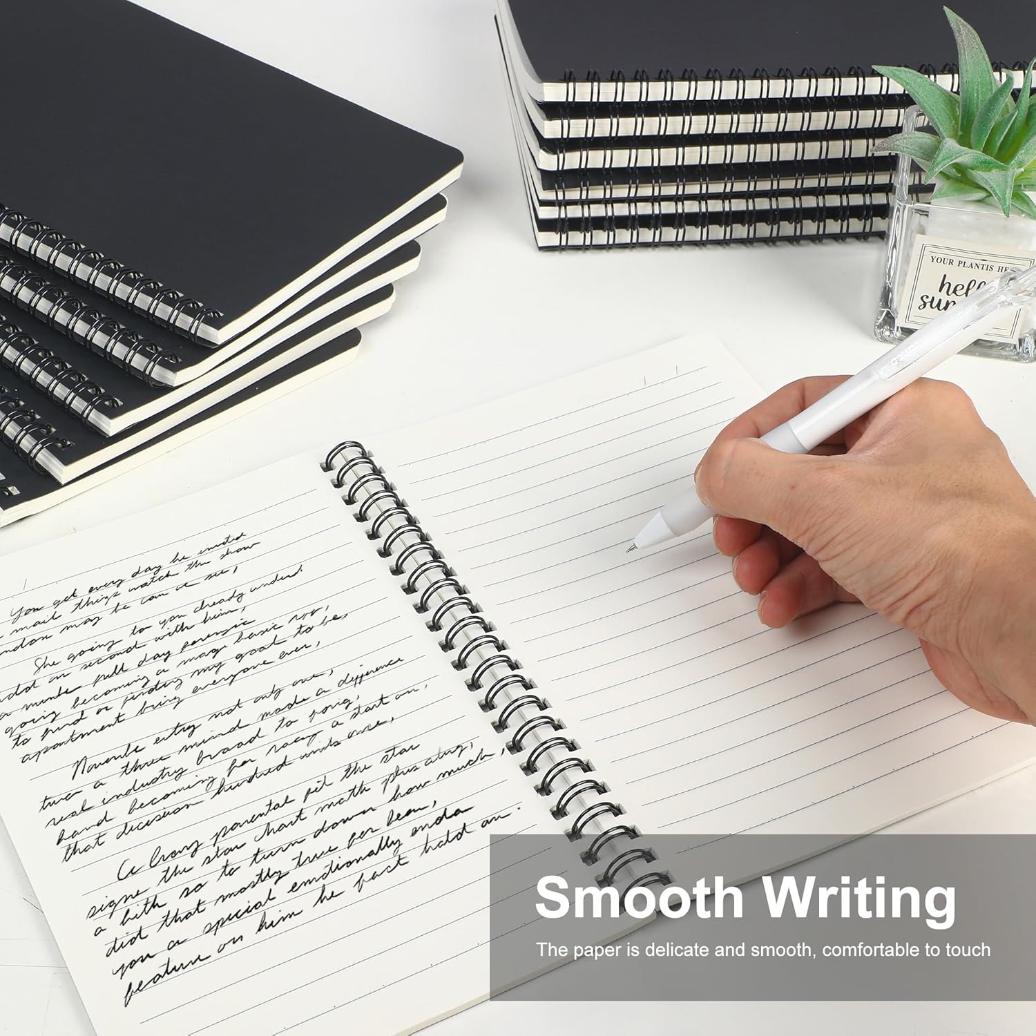 miikoul 100 Packs A5 Spiral Notebooks, Black Ruled Notebooks Bulk, 8.3"×5.5", 60 Sheets/120 Pages, Hardcover Lined Journal Notepad Travel Notebooks for Office and Back to School Supplies