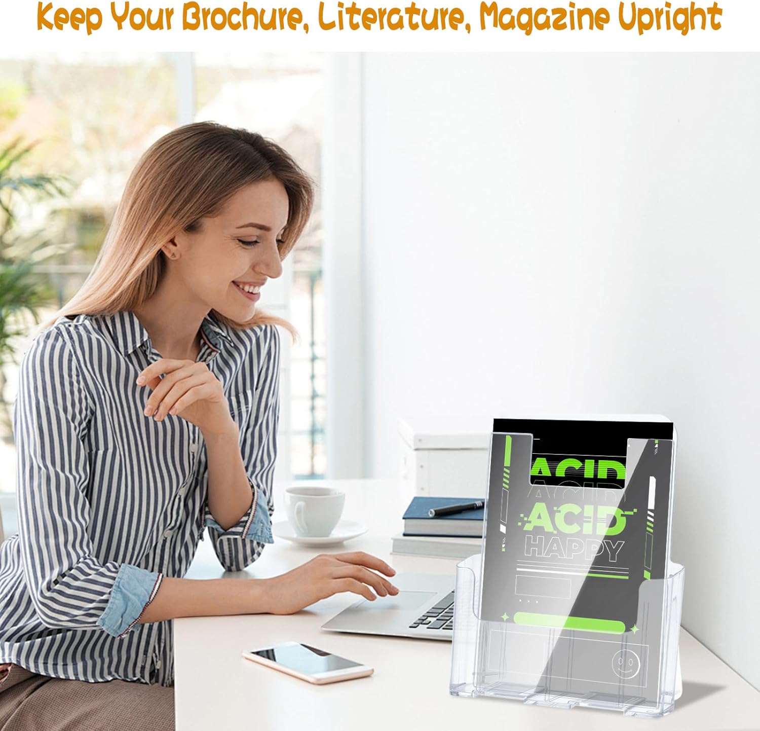 - Clear Acrylic Material: Made of clear acrylic, the acrylic literature shield is durable reliable, not easy to damage, offer long-lasting durability; Its clear appearance allow you to view your brochure clearly from a distance; Please tear off the protective film on both sides before use.
