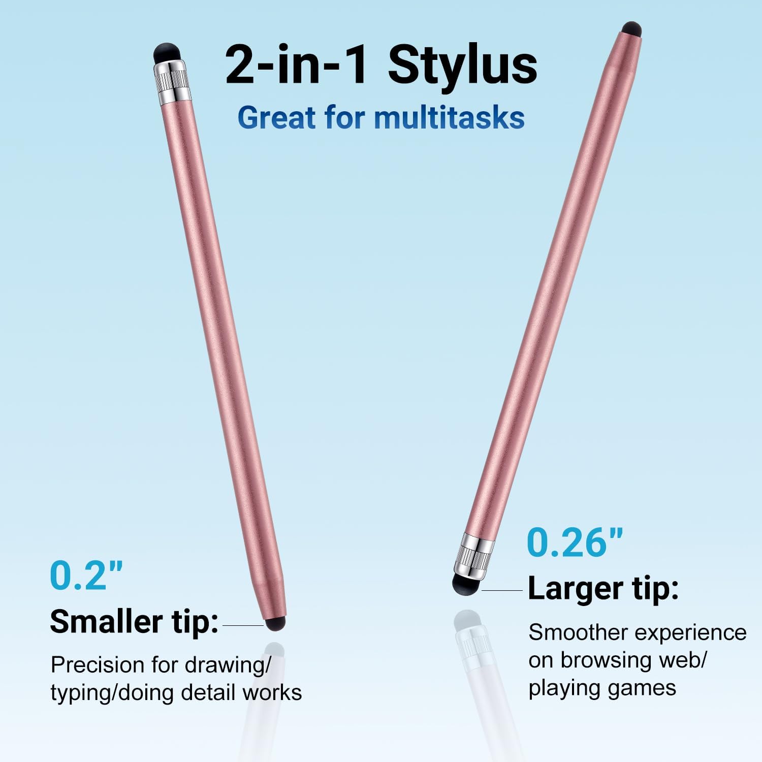 LINFANC 12Pcs Rose Gold Stylus Pen for Touchscreen, 2-in-1 High Precision & Sensitivity Stylus Pen for iPhone/iPad/Android Smartphones and Tablets Compatible with All Touch Screens
