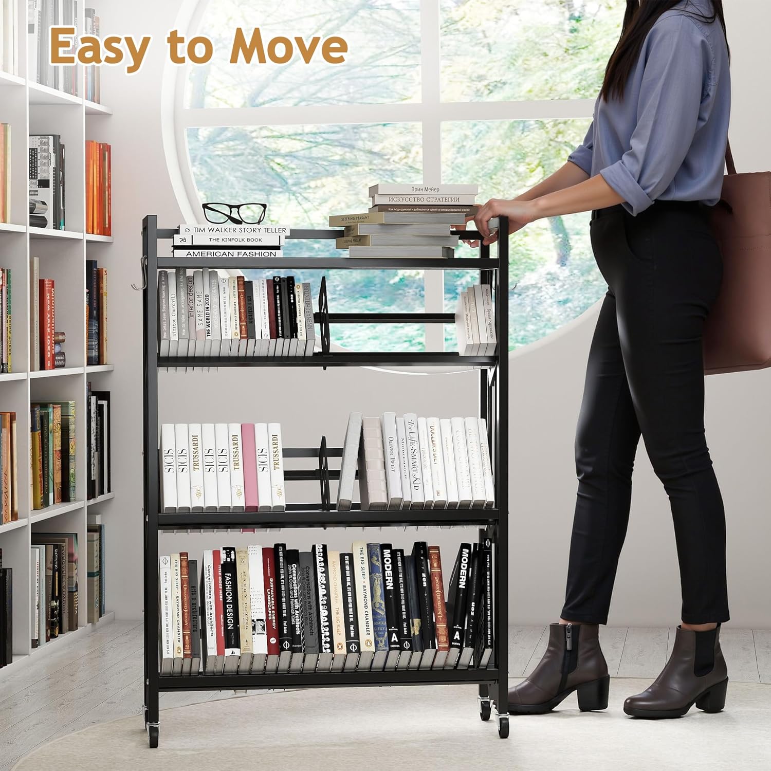 - Sturdy Carbon Steel Material Construction: Crafted with Carbon steel material to hold up to 55lbs per bookshelf. This metal movable book cart is really sturdy and holds a lot of books without wobbling
