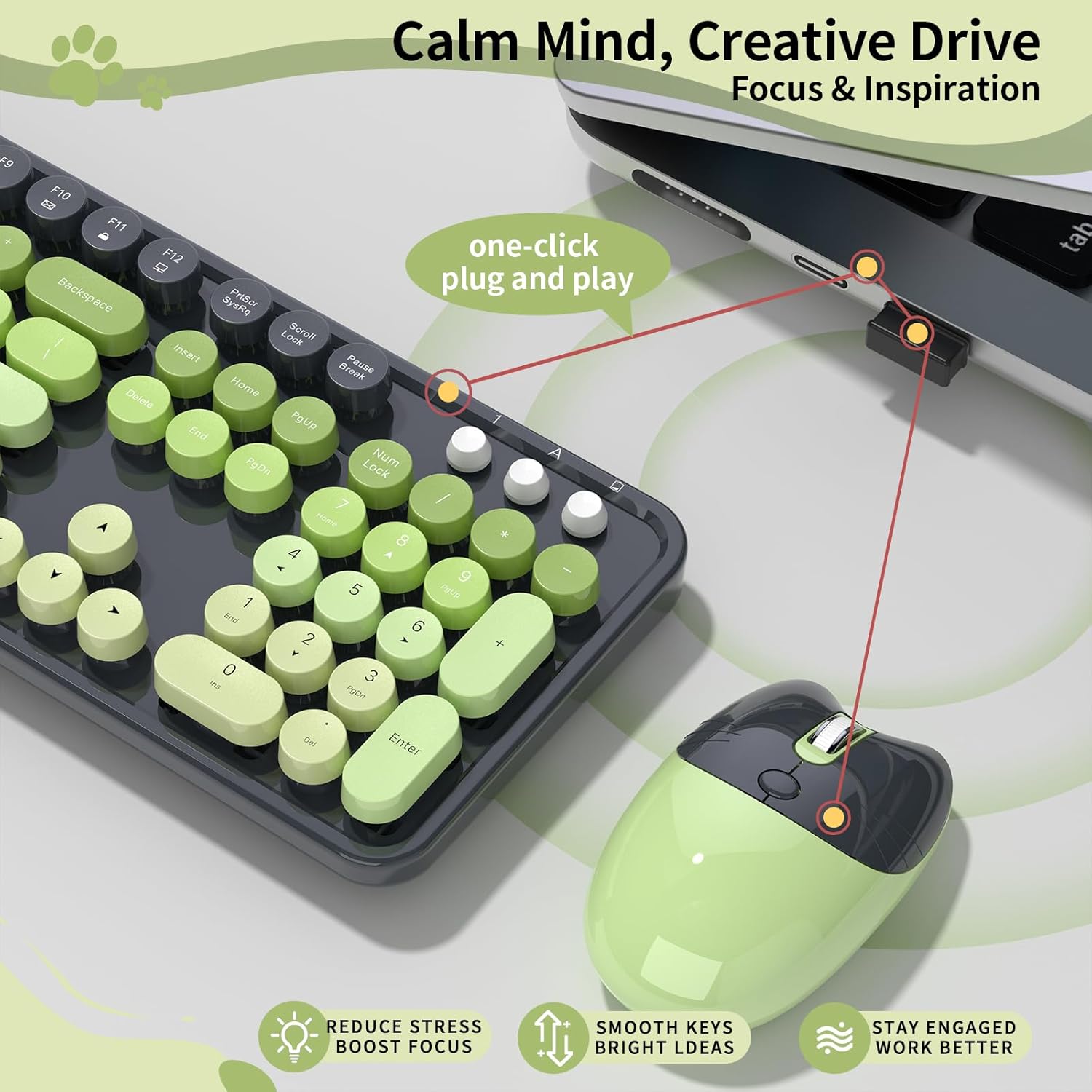 - 💦 FADE-RESISTANT KEYS & RELIABLE CONNECTION This retro keyboard and mouse wireless set features fade-resistant keycaps and a stable 2.4GHz wireless connection up to 33 feet. The plug-and-play design allows quick, driver-free setup.