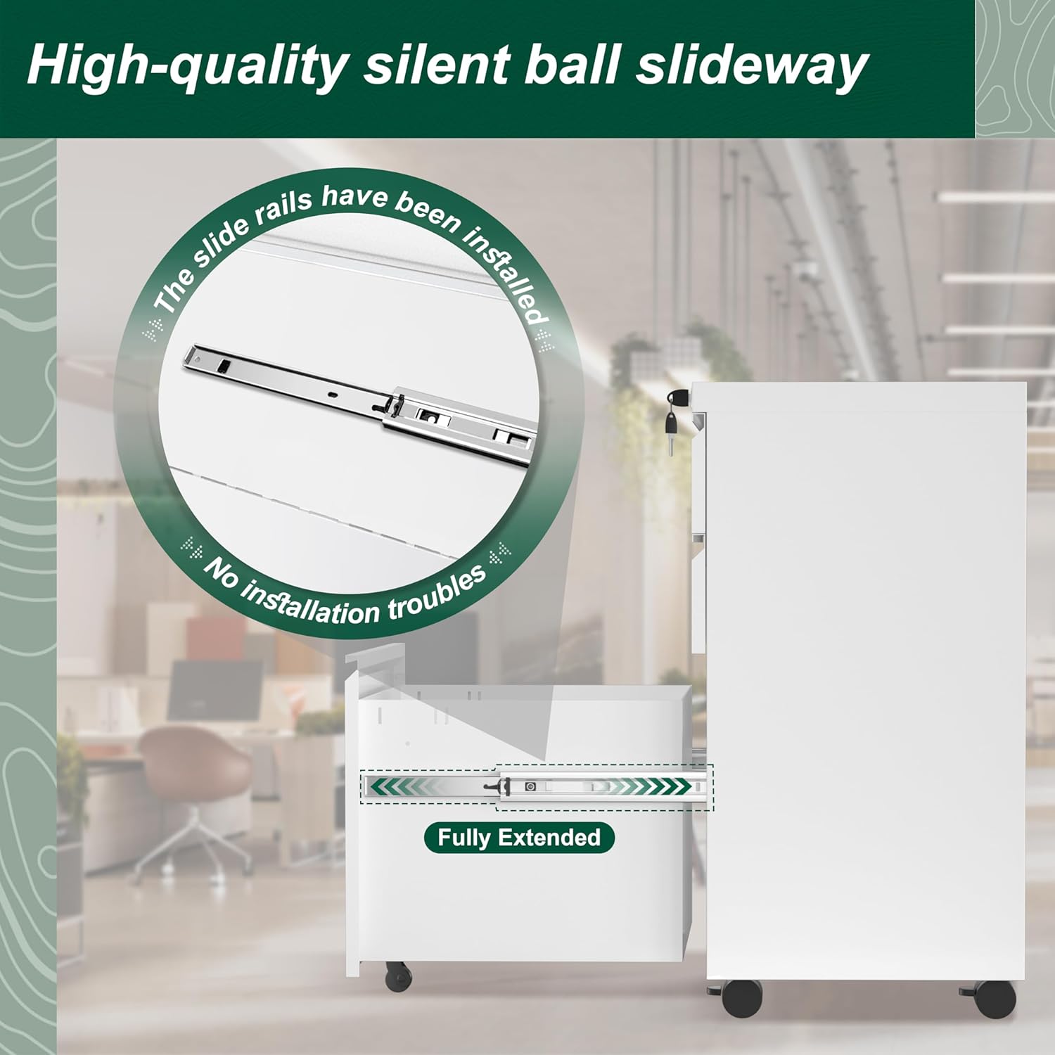 Superday White 3 Drawer Mobile Locking File Cabinet, Metal Rolling Vertical Filing Cabinet with Drawers, Small Under Desk File Cabinets for Office and Home, Fully Assemble