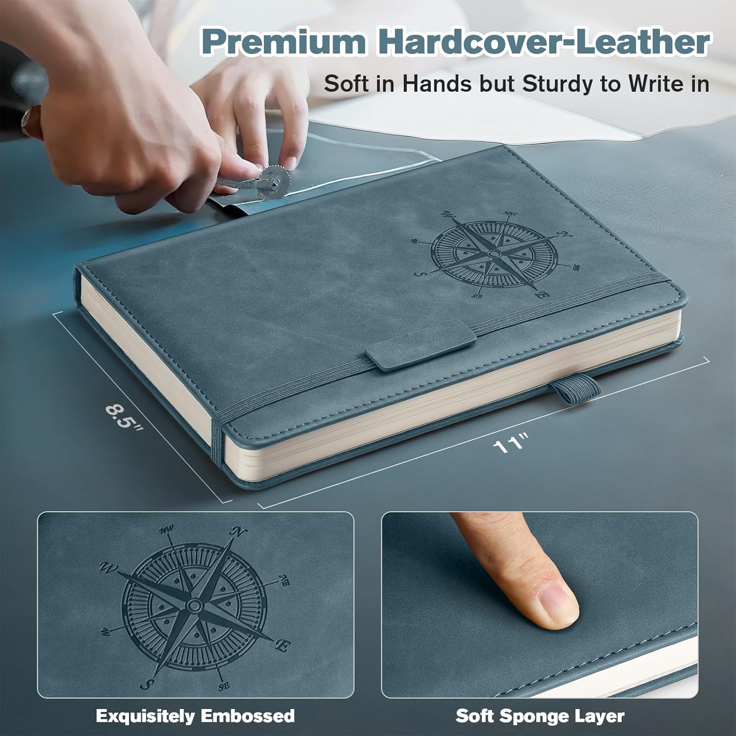 Notebook Journal for Women Men: Leather Journal for Writing, Hardcover College Ruled Journals Notebooks with Thick Paper, Large A4 Daily Journal for Travel, Diary, Gifts for Teens, 8.5"×11", Deepblue