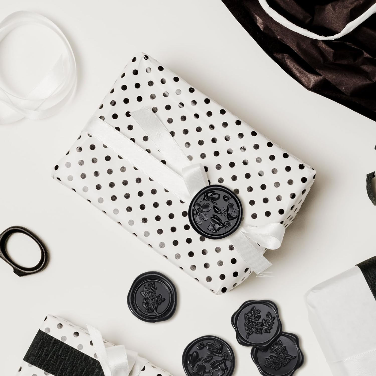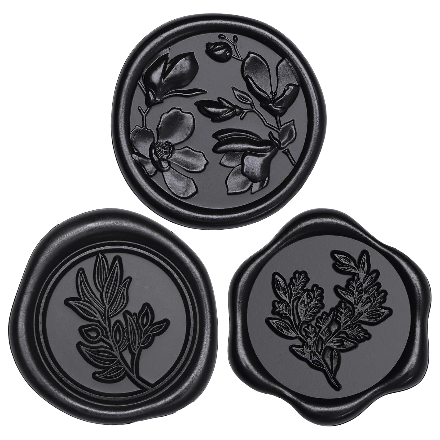 - PACKAGE INCLUDES - You will receive 60 pieces of black color wax seal stickers, (20 stickers per design) - Magnolia & Eucalyptus & Olive Branch. The wax seal sticker diameter is 1.2 inches/30mm and with almost the same size of adhesive on the back. Weighs 0.02oz per seal and may add weight to envelopes.