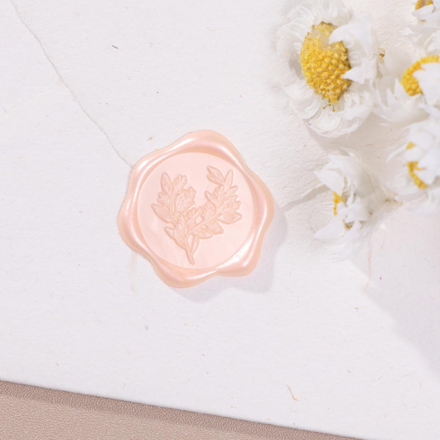 - PACKAGE INCLUDES - You will receive 60 pieces of pearl pink color wax seal stickers, (20 stickers per design) - Magnolia & Eucalyptus & Olive Branch. The wax seal sticker diameter is 1.2 inches/30mm and with almost the same size of adhesive on the back. Weighs 0.02oz per seal and may add weight to envelopes.