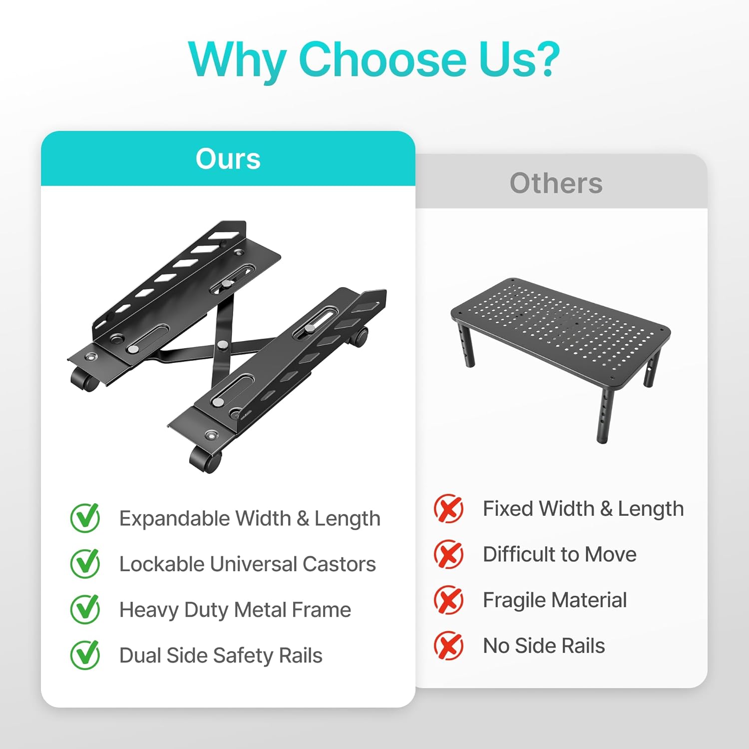 - 【Adjustable Width and Length】Unlike traditional computer tower stands with fixed length, our stand features a dual-adjustment mechanism, offering a width range of 6.3 to 11.8 inches and a length adjustment from 15.75 to 20.08 inches—5 inch longer than ordinary stands. This CPU stand is suitable for various sizes of towers, thus providing users with more flexible and personalized choices. Please check your computer case dimensions before purchasing.