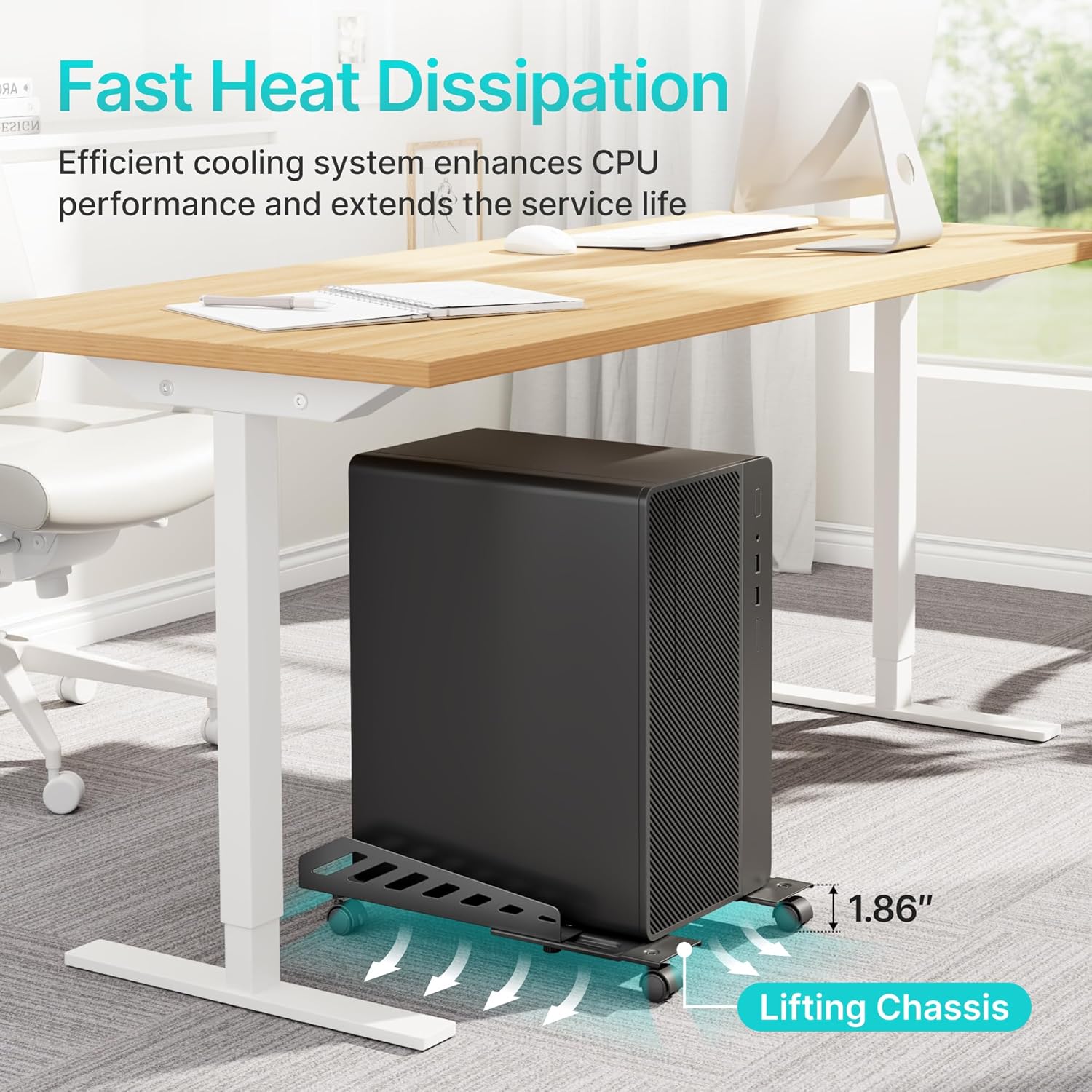 - 【Ventilation and Heat Dissipation】 The bottom and sides of the stand have a hollow design, which helps to enhance the heat dissipation under and around the computer and ensure your computer runs efficiently. The 1.86" ground clearance allows unimpeded airflow and keeps CPU ventilated—no more melted carpet fibers or dust-clogged intakes. Better protect your computer tower and prolong its lifespan!