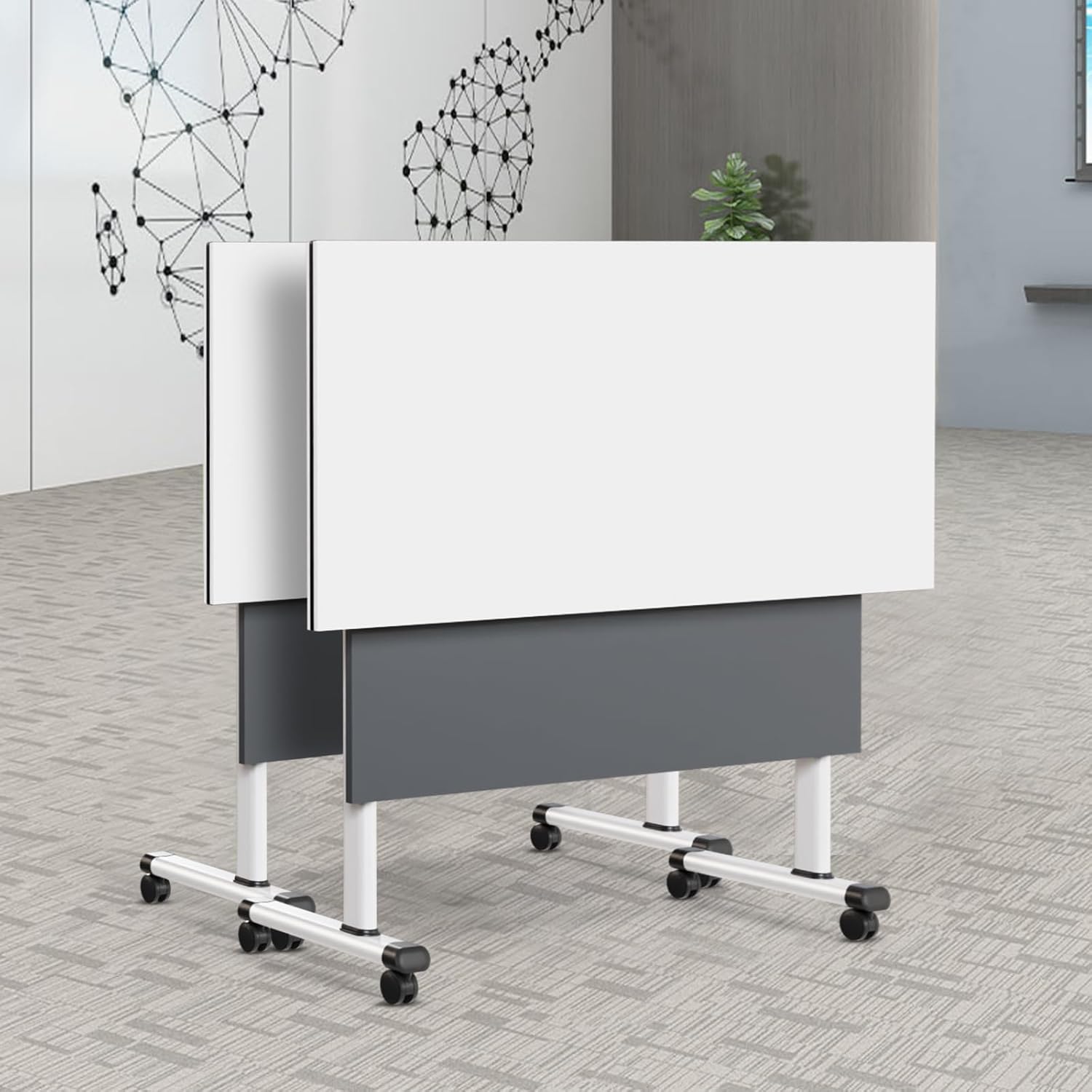 - 【Foldable Design】This folding flip top mobile training room table folds easily and quickly, is flexible, foldable, removable and splicable. There are enlarged folding lock buttons on both sides of the stackable conference table. After folding, conference table can be stacked to save space.The rounded edge design allows you to use our training room tables with confidence.