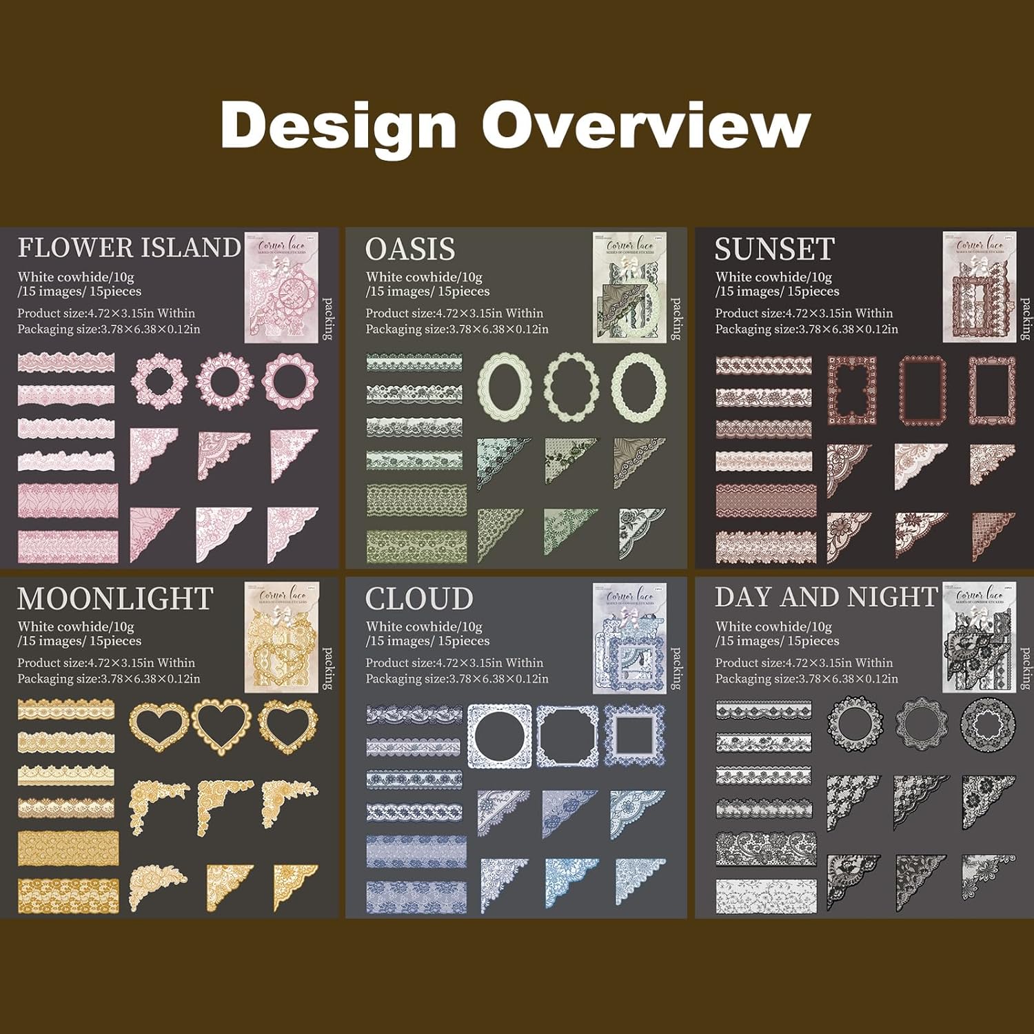 - Elegant Vintage Aesthetic: Includes 90 vintage-inspired lace stickers in 90 unique designs such as hearts corners frames and borders each measuring up to 4.72 x 3.15 inches adding layered texture and graceful charm to journals and scrapbooks