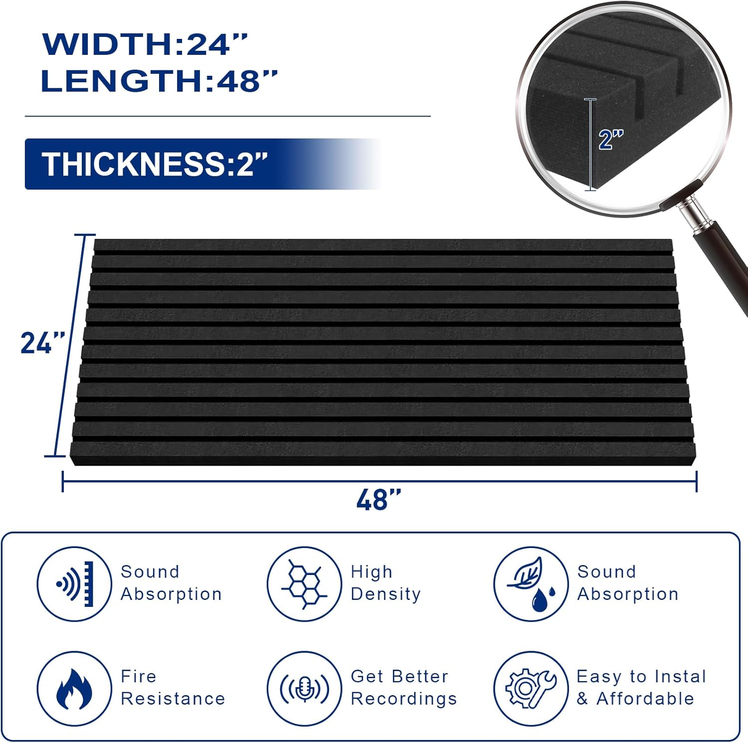 4 Pack Acoustic Foam Panels, 2" X 24" X 48" Wedge Soundproof Studio Foam for Walls,Sound Absorbing Panels, Sound Insulation for Studio, High Density Fireproof Studio Wedges (Black, 4 Pack)
