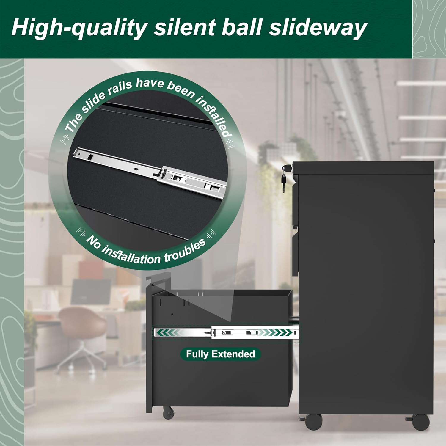 - ❤All for Improving Office Productivity -- Overall size:14.9" W×17.32"D×23.8"H, perfect size make the black file cabinet can be put under desk or side table or small spaces to save space, 5 smooth anti-tilt casters can be rotated 360°and locked, flexibly adapting to the all kinds of office floor. 1 stationery tray is included, you can use it to organize small office supplies. Unique pull-out handles are easy to grab. All for improving office productivity and efficiency!