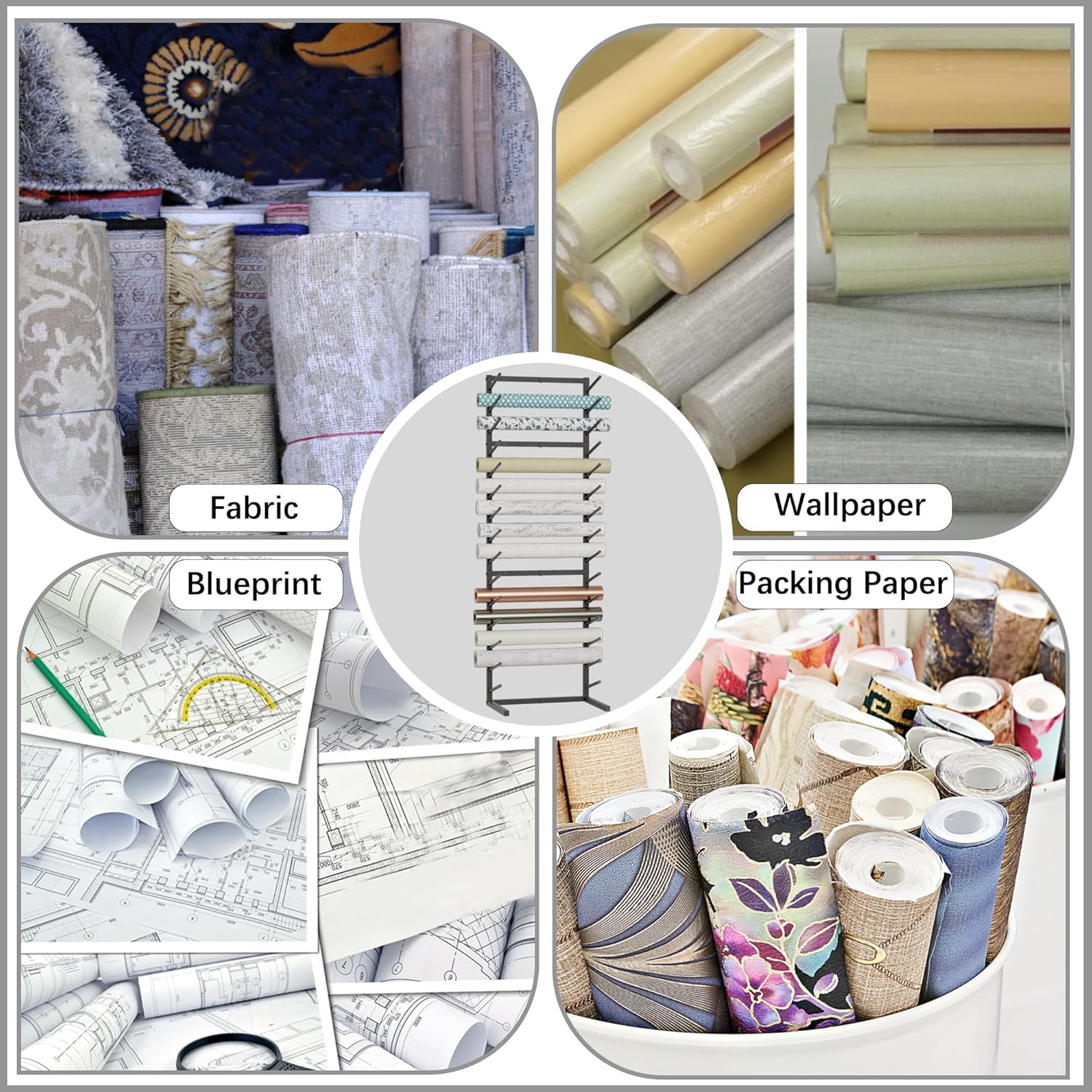 - 【L-Shaped Base Stability】Unique L-shaped reinforced base prevents tipping, keeping heavy construction plans or bulk poster rolls securely upright. Matte black finish resists rust and scratches in humid workshops.