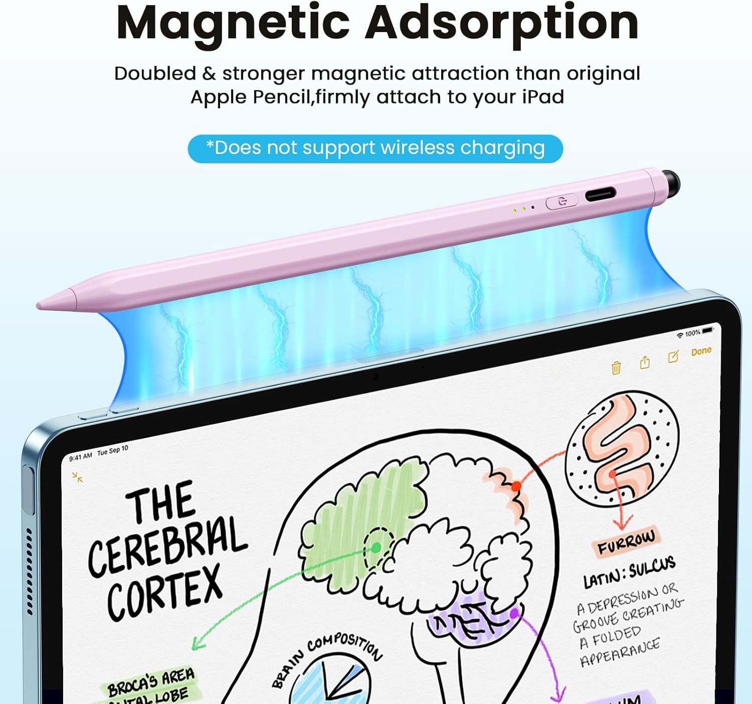- 🔔【For iPad 2018-2025】This ipad pencil is compatible with Apple iPad 2018-2025. This Pencil for iPad 10th /9th /8th /7th /6th; iPad Pro 11 inch /12.9 inch; iPad Mini 5th /6th; iPad Air (5th /4th /3rd); New iPad Pro 2024 11 inch &13 inch (M4); New iPad Air 2024 11 inch &13 inch (M2). And it's easy to use! No need to connect to Bluetooth. Double-click the top touch control to turn it on. This iPad pen is magnetically adsorbed and can be attached to the iPad when not in use.