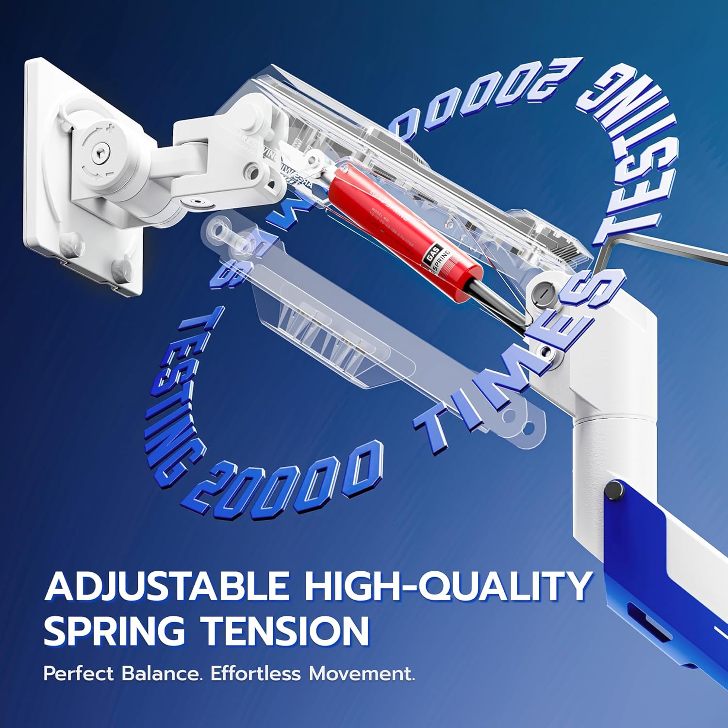 - Upgraded Construction - Engineered with premium aluminum & steel arm and joints for ultimate stability, featuring an 20,000-cycle tested gas spring system that reduce screen wobble during use. The 360° fully adjustable mechanism provides unprecedented positioning flexibility while maintaining rock-steady performance for long-term use.